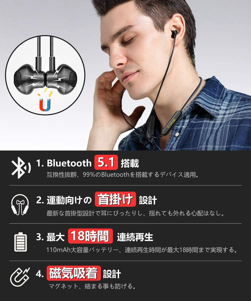 大口注文・法人のお問い合わせはこちらBluetoothで簡単接続、首掛け設計で運動時にも最適です。最大18時間の連続再生を実現、収納時は磁気吸着設計で絡まる事も防げます。