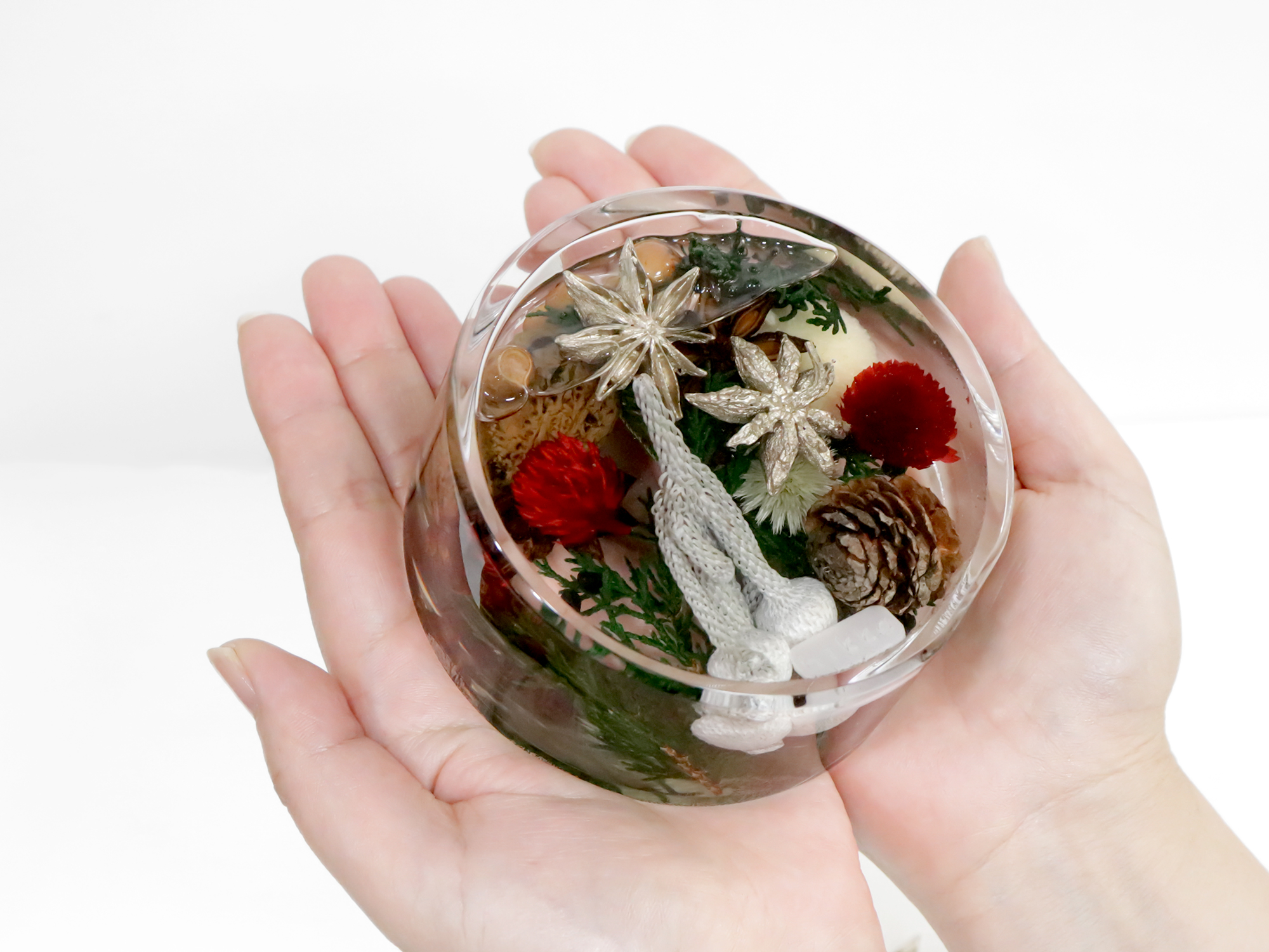 | 素材・原材料 | 素材:アクリル 内容物:花材、シリコンオイル(非危険物) |