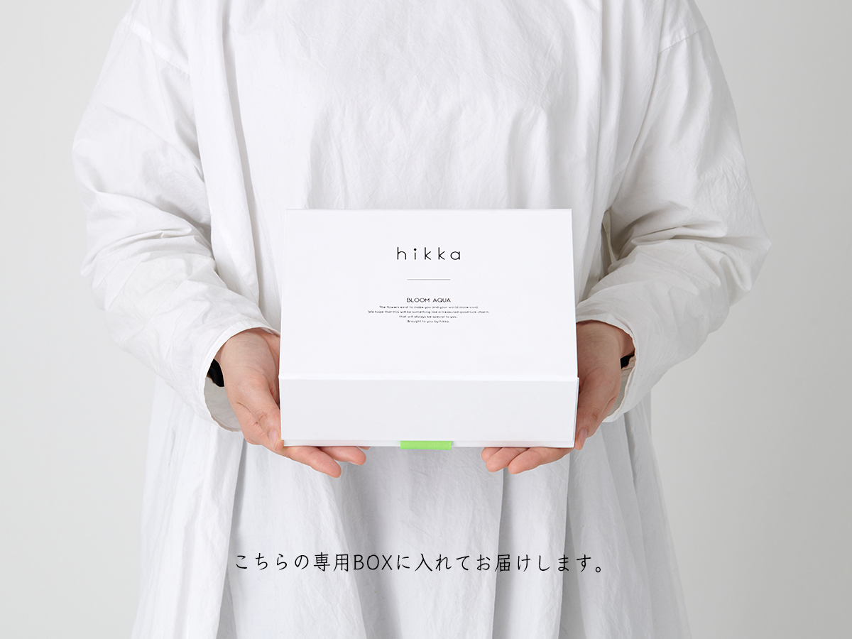 hikkaは一つ一つのお品物がギフトになるよう、プレーンなデザインのギフトボックスをつけています。生花と違い、花粉や臭いがなく虫もこないため、生花の持ち込みが禁止されている場所でも鑑賞が可能。お手入れのいらないお花は、贈る相手にも負担がなく安心です。
