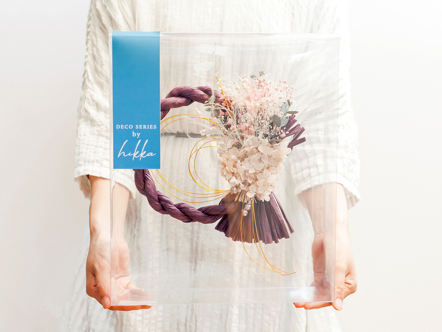 「花を味方に」をブランドメッセージに誕生した、舞い上がる花びらのようにひとりひとりの飛躍を願うお花のプロダクトブランド「hikka(ヒッカ)」。スタイリッシュでボタニカルなしめ縄で新年を。お正月が終わった後もお花を楽しめるしめ縄で特別な新年を迎えてみませんか。