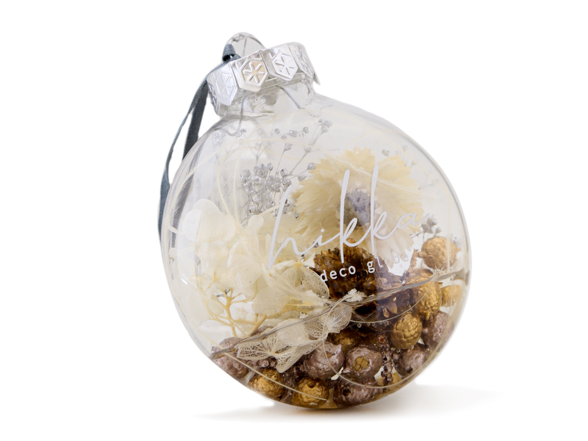「花を味方に」をブランドメッセージに誕生した、舞い上がる花びらのようにひとりひとりの飛躍を願うお花のプロダクトブランド「hikka(ヒッカ)」。美しさが長く続くドライフラワーとプリザーブドフラワーをぎゅっと詰め込んでオーナメントにしました。