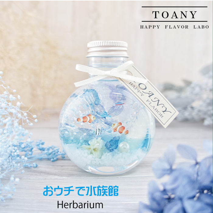 全てプリザーブドフラワーを使用し一点一点作家が丁寧に手作りで制作している「TOANY HAPPY FLAVOR(トアニーハッピーフレーバー)」。今人気のハーバリウムですが、プリザーブドフラワーやハーバリウムオイルを厳選して使用しており、透明感にこだわった仕上がりになっています。