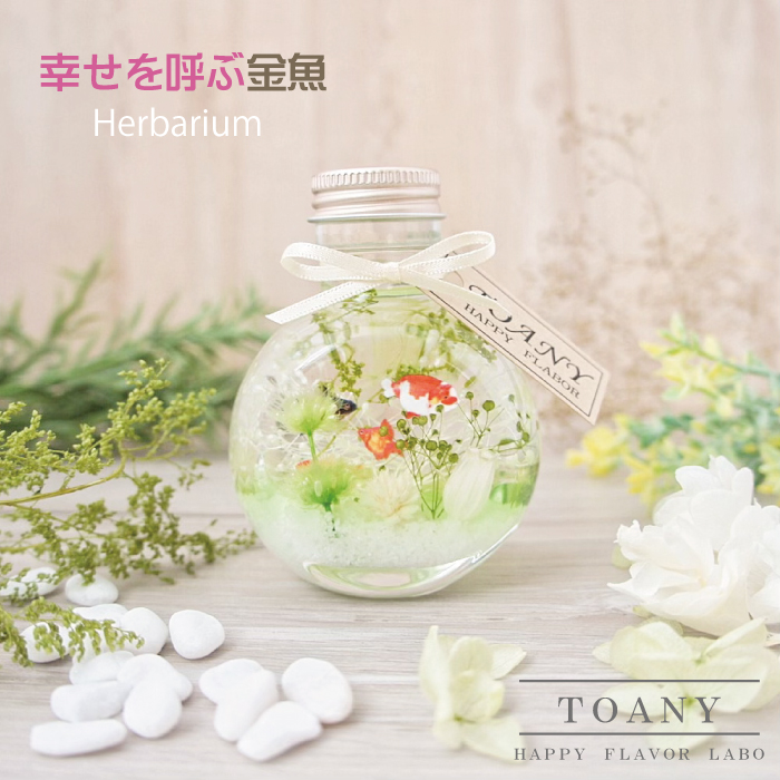 全てプリザーブドフラワーを使用し一点一点作家が丁寧に手作りで制作している「TOANY HAPPY FLAVOR(トアニーハッピーフレーバー)」。今人気のハーバリウムですが、プリザーブドフラワーやハーバリウムオイルを厳選して使用しており、透明感にこだわった仕上がりになっています。