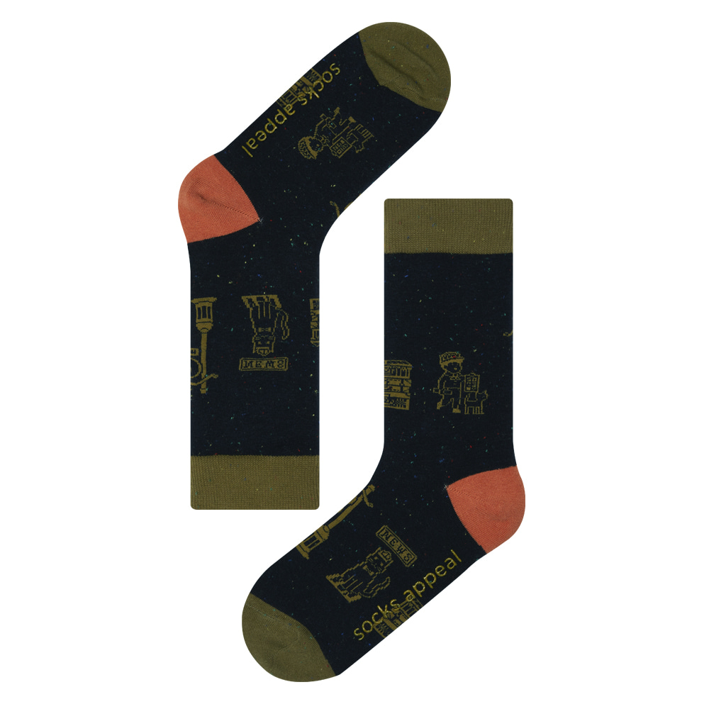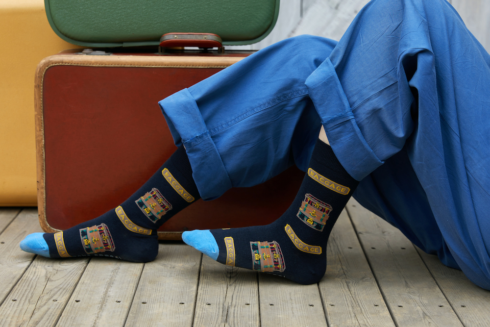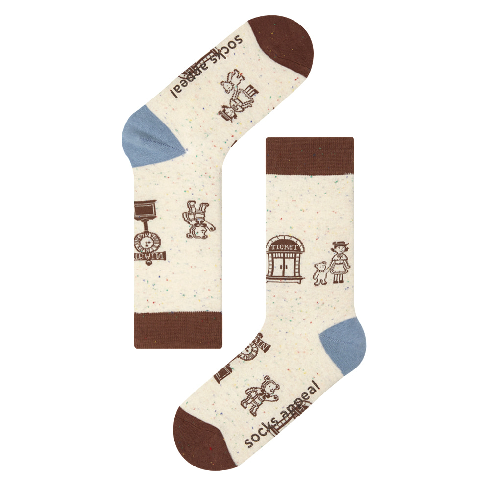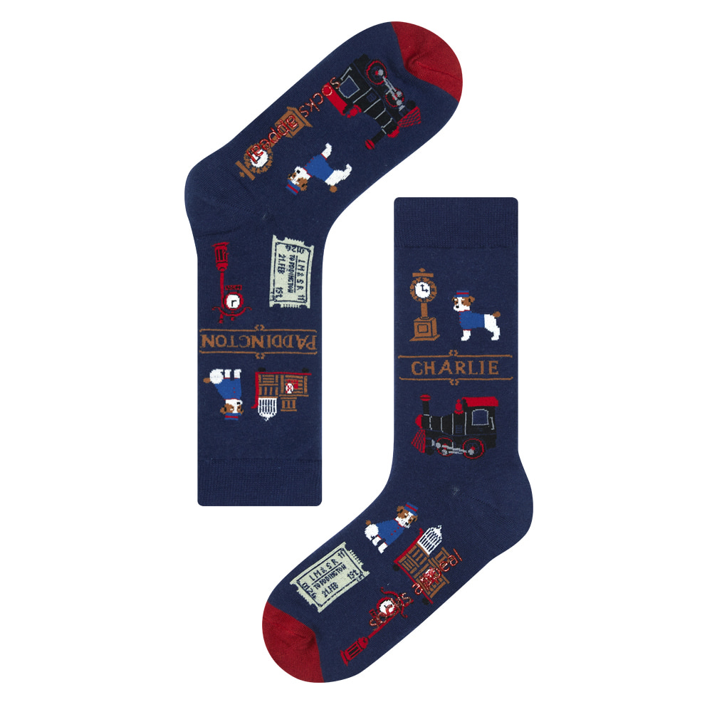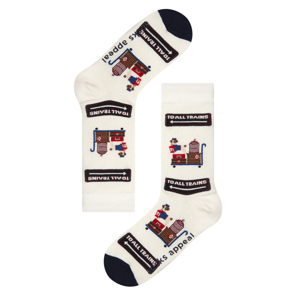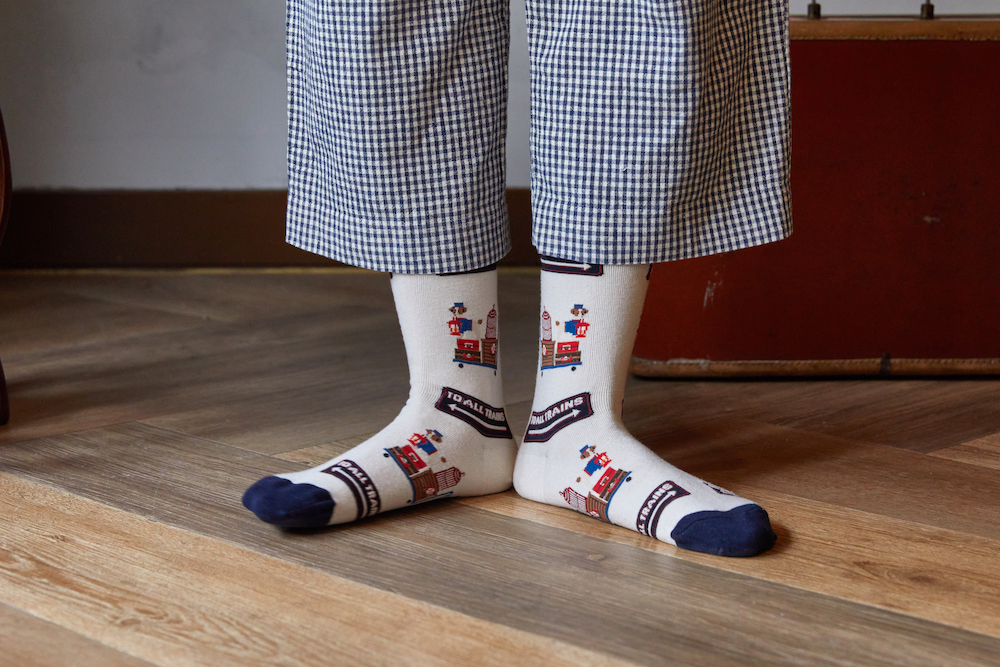大口注文・法人のお問い合わせはこちら「足もとから旅行気分を楽しんで欲しい」というメッセージが込められたソックスです。ロンドン・パディントン駅の風景をテーマにしたラインナップ。駅に行き交う人々やバゲッジ、時計台や切符売り場など活気のあるシーンがデザインされています。ポーターやニュースペーパー、テレフォンボックスなど異国の情緒に触れて旅の楽しさを感じられます。