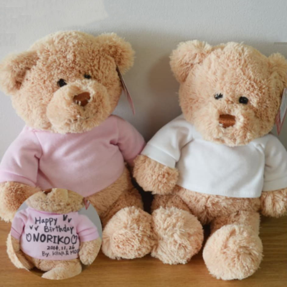 大口注文・法人のお問い合わせはこちらふわふわしたベージュの毛が可愛らしい寄せ書きTシャツベアです。ぬいぐるみが着ているTシャツにはペンで寄せ書きをすることができます。