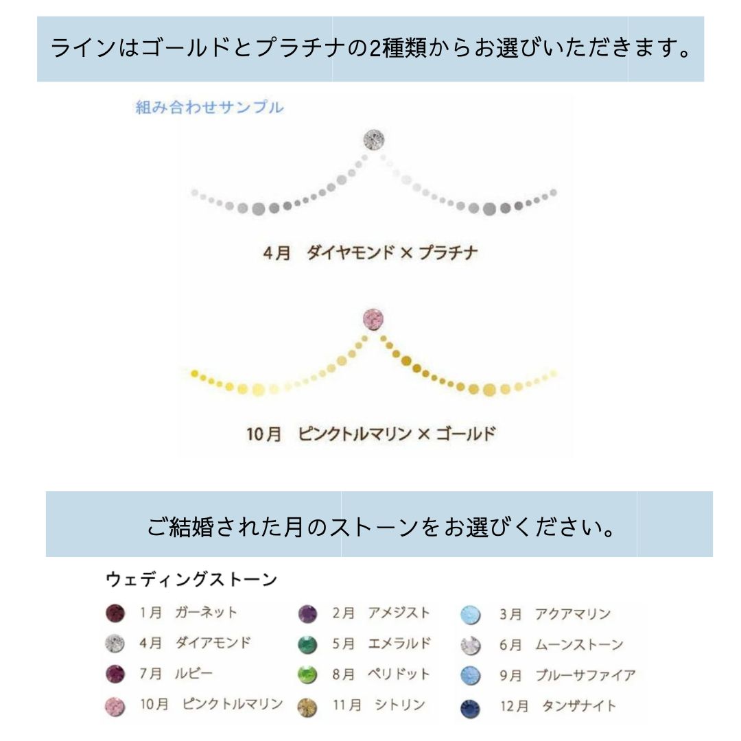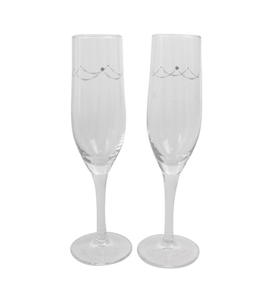 大口注文・法人のお問い合わせはこちら透き通ったシャンパングラスには、金またはプラチナでガーランドの様なデザインが施されています。一粒のウェディングストーンは月によって異なります。シャンパンを入れると細かな泡と一緒に輝きます。