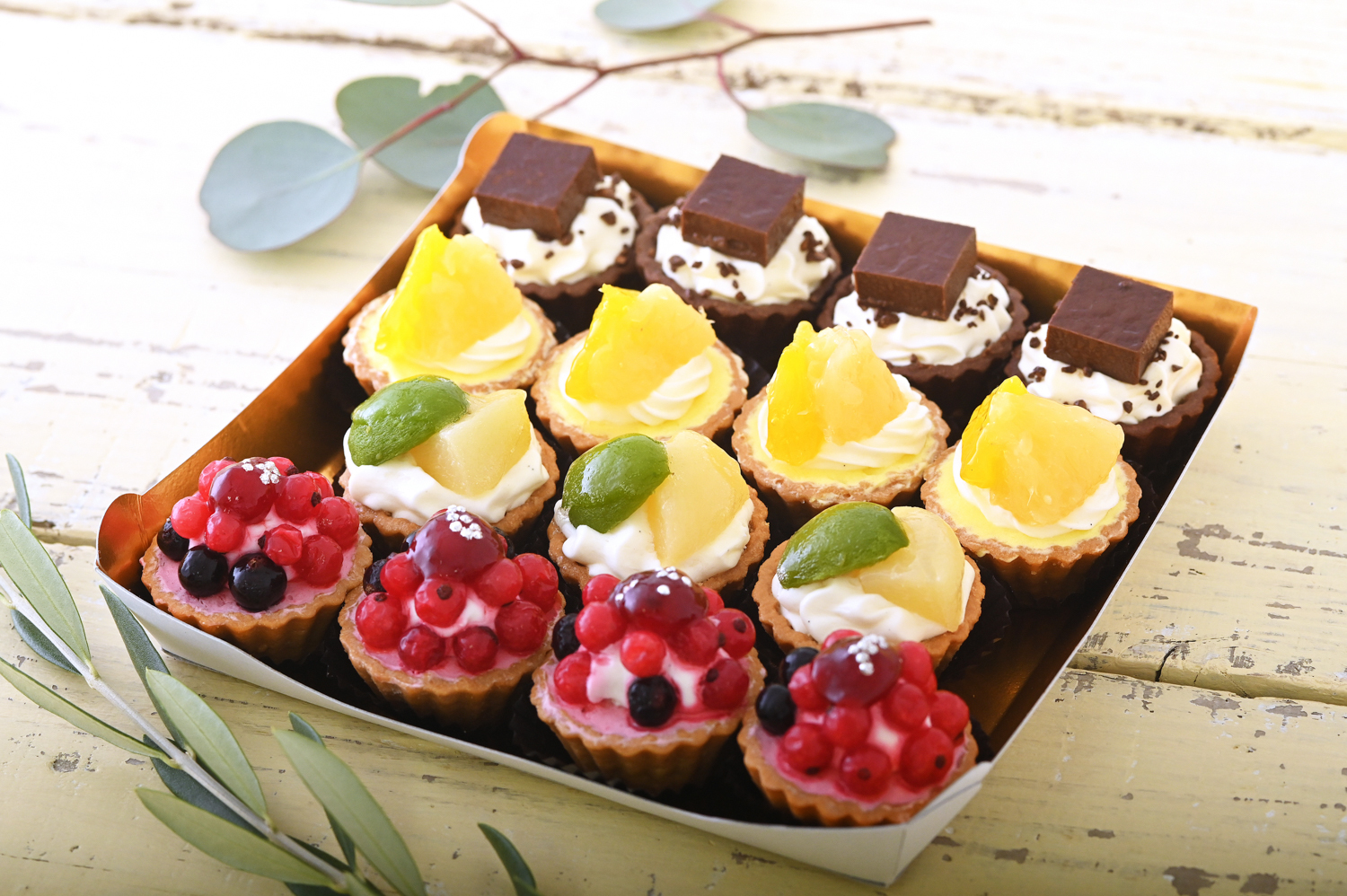 食べやすいサイズのミニタルトは、フレーバーによってカラフルにデザインされていて写真を撮りたくなる可愛さ。保存期間が長いので、急なお客様や、手土産にも重宝します。 どれを食べるか選ぶのも楽しくなるミニタルトは、小さなお子さまから年配の方までみんなにおすすめ!贈り物にぜひご利用ください。