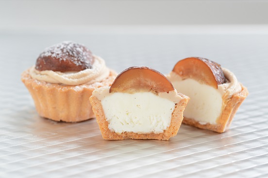 定番スイーツがタルトになって登場です。サクサク食感のタルトにオリジナルクリームを入れ渋皮栗のクリームと渋皮栗を乗せました。モンブラン好きにはたまらない一品です。