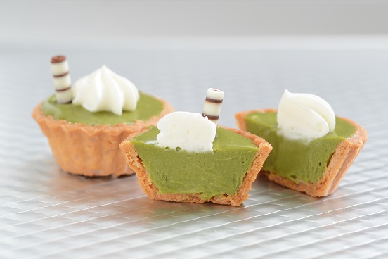 タルトの中にくちどけ滑らかな抹茶の生チョコをたっぷり入れました。ちょっと大人な味わいの抹茶生チョコは店頭でも人気の商品です。