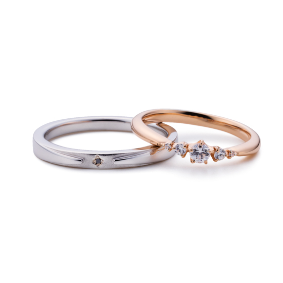 ジュエリーに未来への思いを込めてお届けする「festaria(フェスタリア)」のSV980ブラックダイヤモンドとWish upon a star Twinkleキュービックペアリングです。シルバーのメンズリングにはブラックダイヤモンド、ゴールドカラーのレディースリングには5粒のストーンが輝きます。