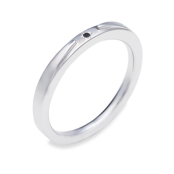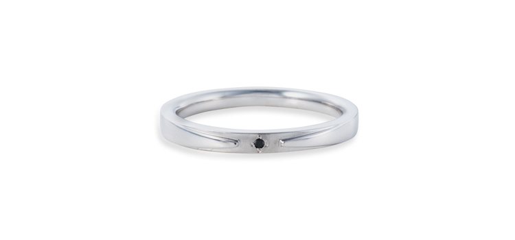 メンズリングの中央にさりげなくブラックダイヤが埋め込まれています。裏には誠実・慈愛の意味をもつサファイアが留められています。