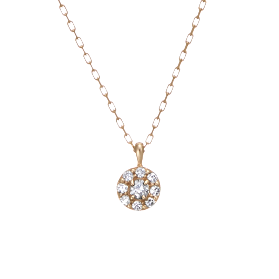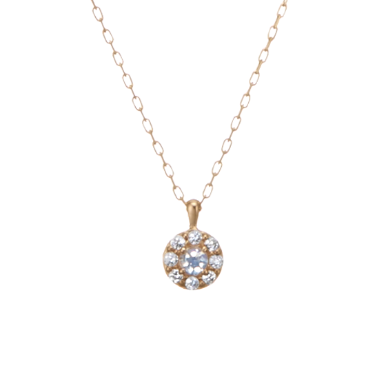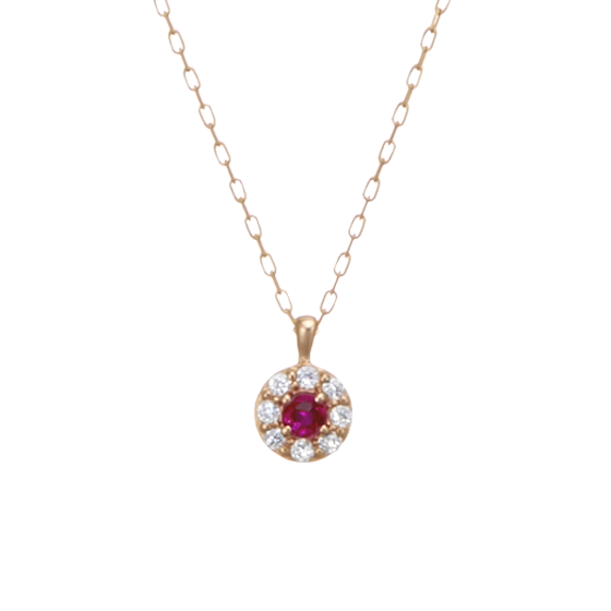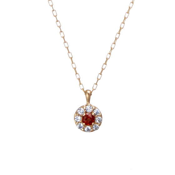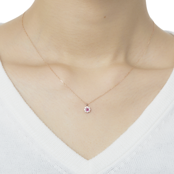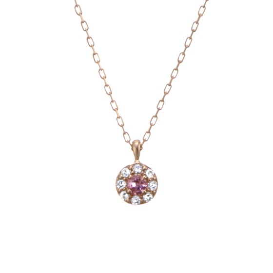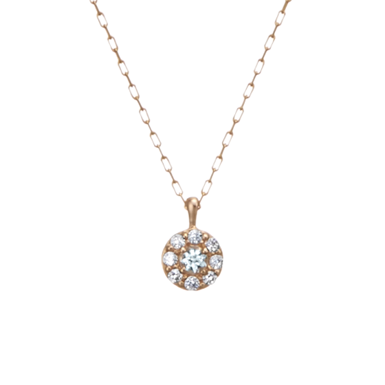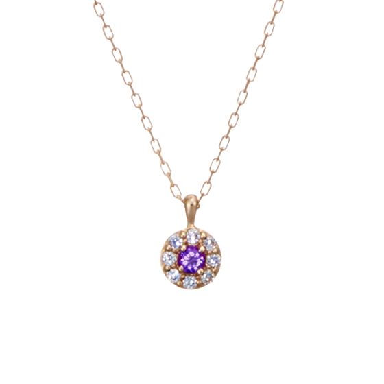 ジュエリーに未来への思いを込めてお届けする「festaria(フェスタリア)」のK10ピンクゴールドキュービックペンダントです。生まれ月によって異なる誕生石の周りには、キュービックが花びらのようにデザインされています。ピンクゴールドのチェーンなので、胸元を華やかに見せてくれます。