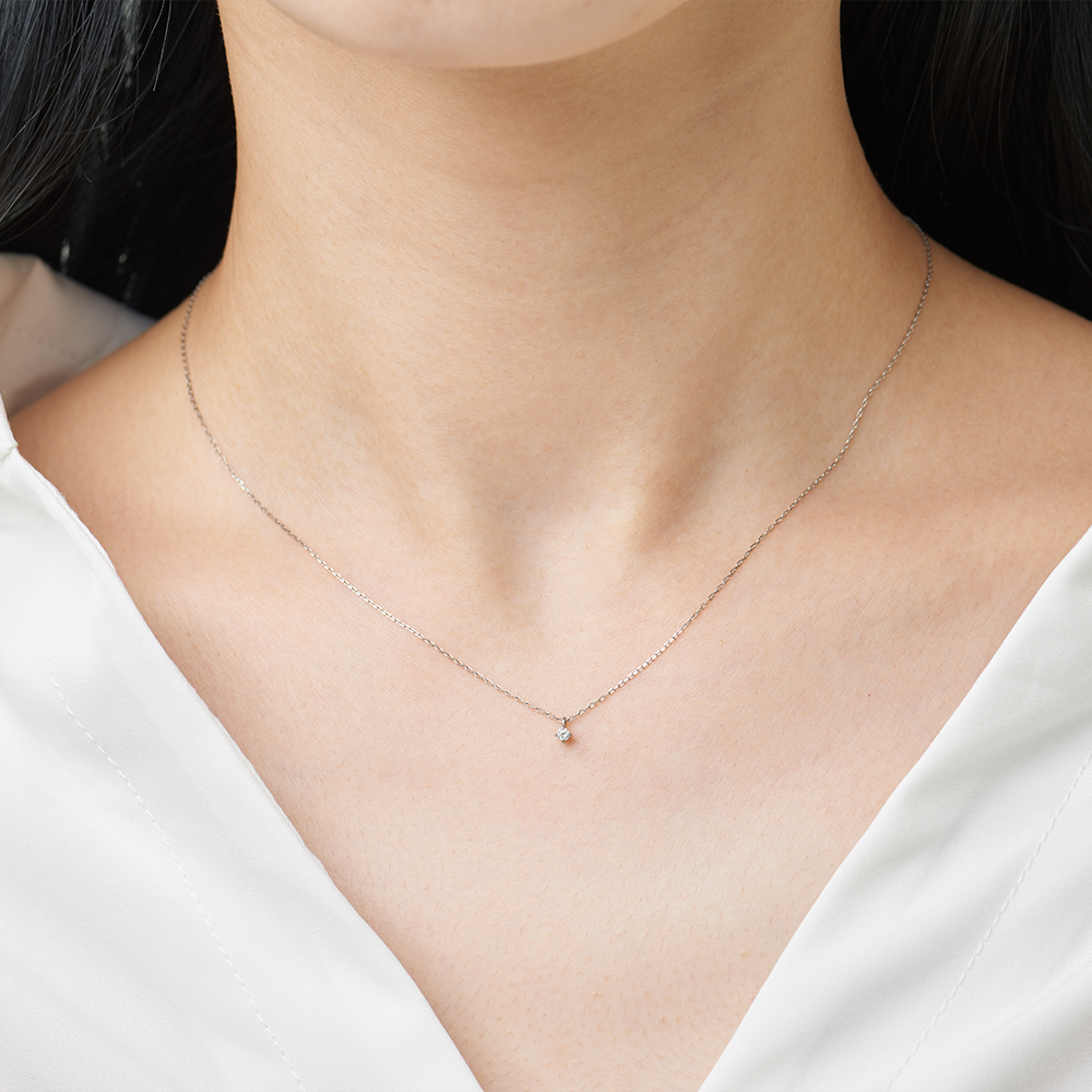C'shell(シシェル)のネックレスはダイヤモンドを使用していることもあり、若い方からお歳を召した方まで幅広い年代の方に人気があります。シンプルで気品のある落ち着いたデザインは服装を選ばず、普段遣いとして、日常的にもフォーマルな場でも使うことができるジュエリーです。
