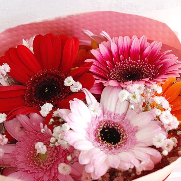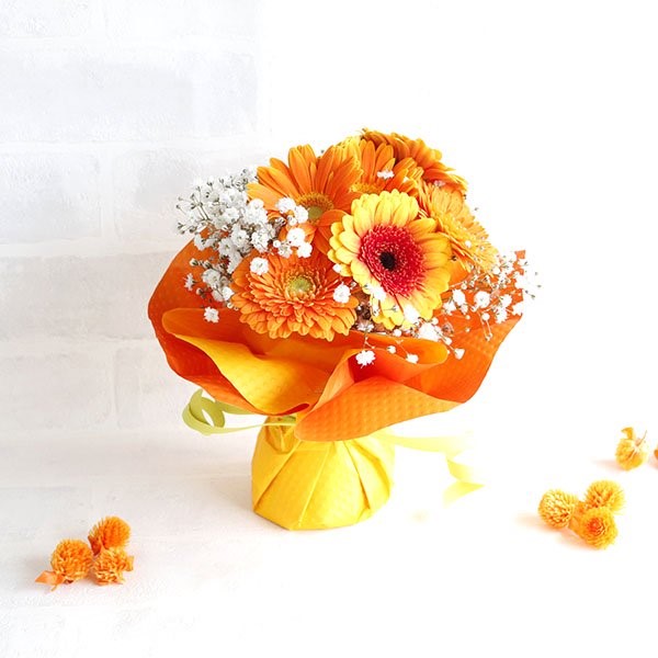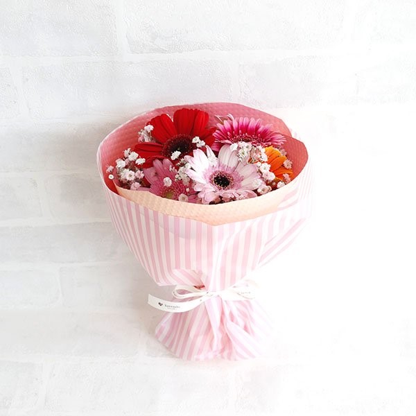 誕生日お祝いや大切な記念日の贈り物にぴったりなガーベラブーケ。素敵なドレス、華やかな衣装と相性抜群なので発表会のプレゼントにもおすすめ。贈り物にはもちろん、ご自分へのご褒美にもぜひ。お部屋にこの花束があるだけで楽しくなりますよ。