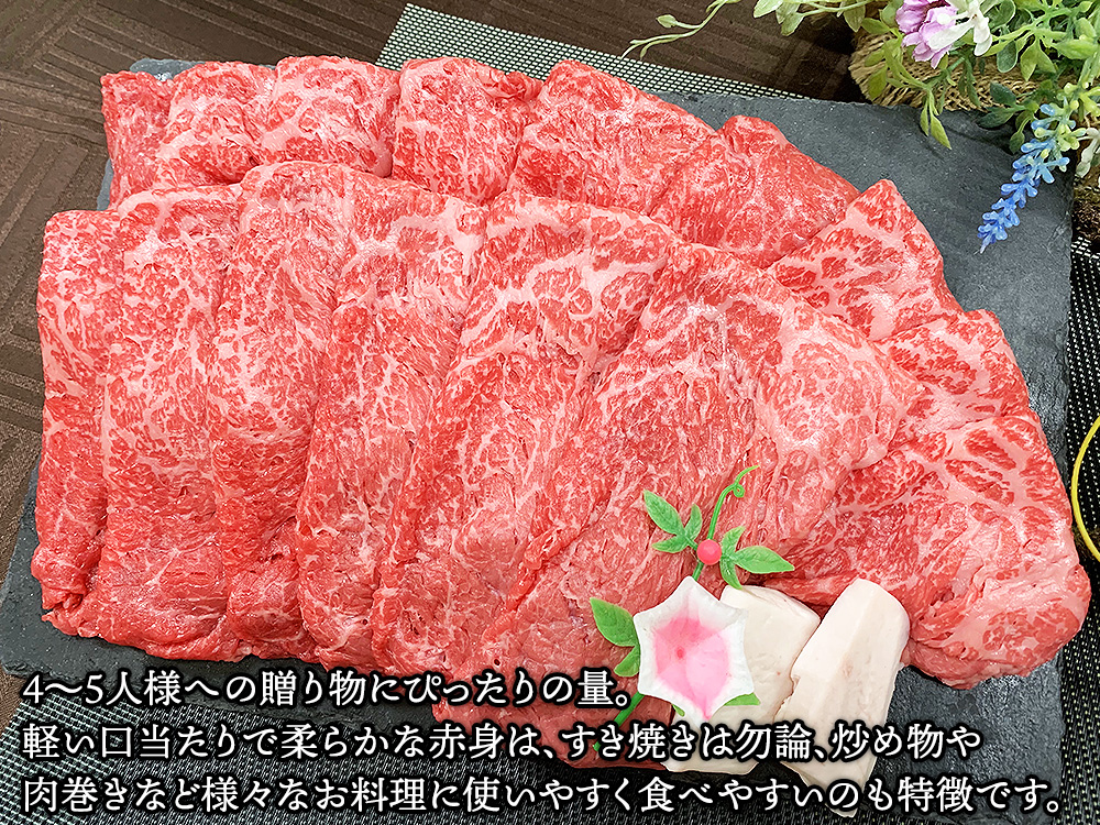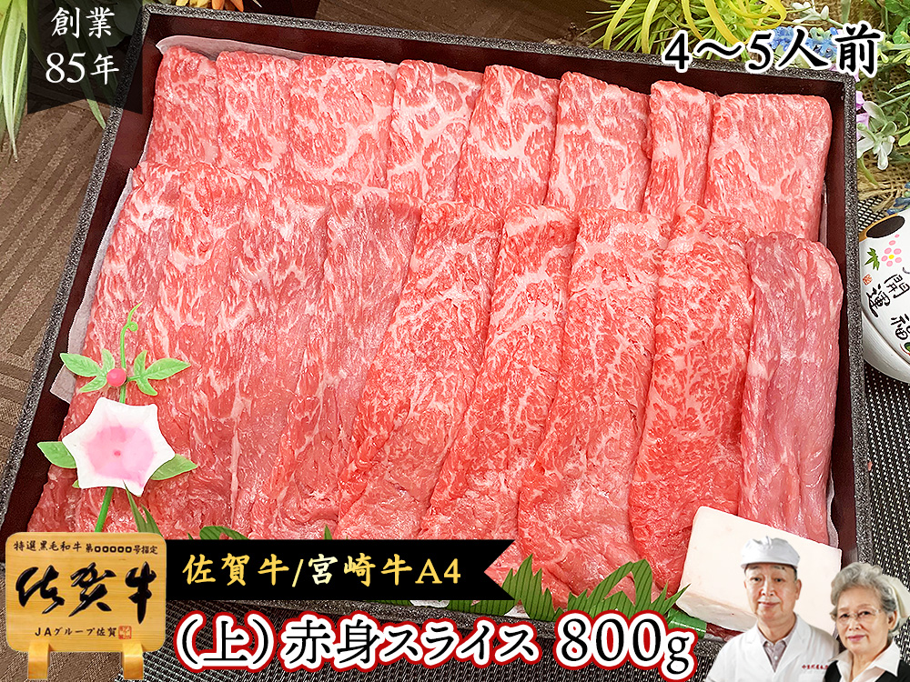 大口注文・法人のお問い合わせはこちら九州産( 佐賀牛 宮崎牛 )ブランド牛に限定した、4等級の上赤身スライス。赤身部位ですがA4ランクになると、程よくサシが入り柔らかでやさしい口当たりが最大の特徴です。すき焼きや、焼きしゃぶは勿論のこと肉巻きやゴージャスな牛丼など様々なお料理に使いやすいとご好評いただいております。