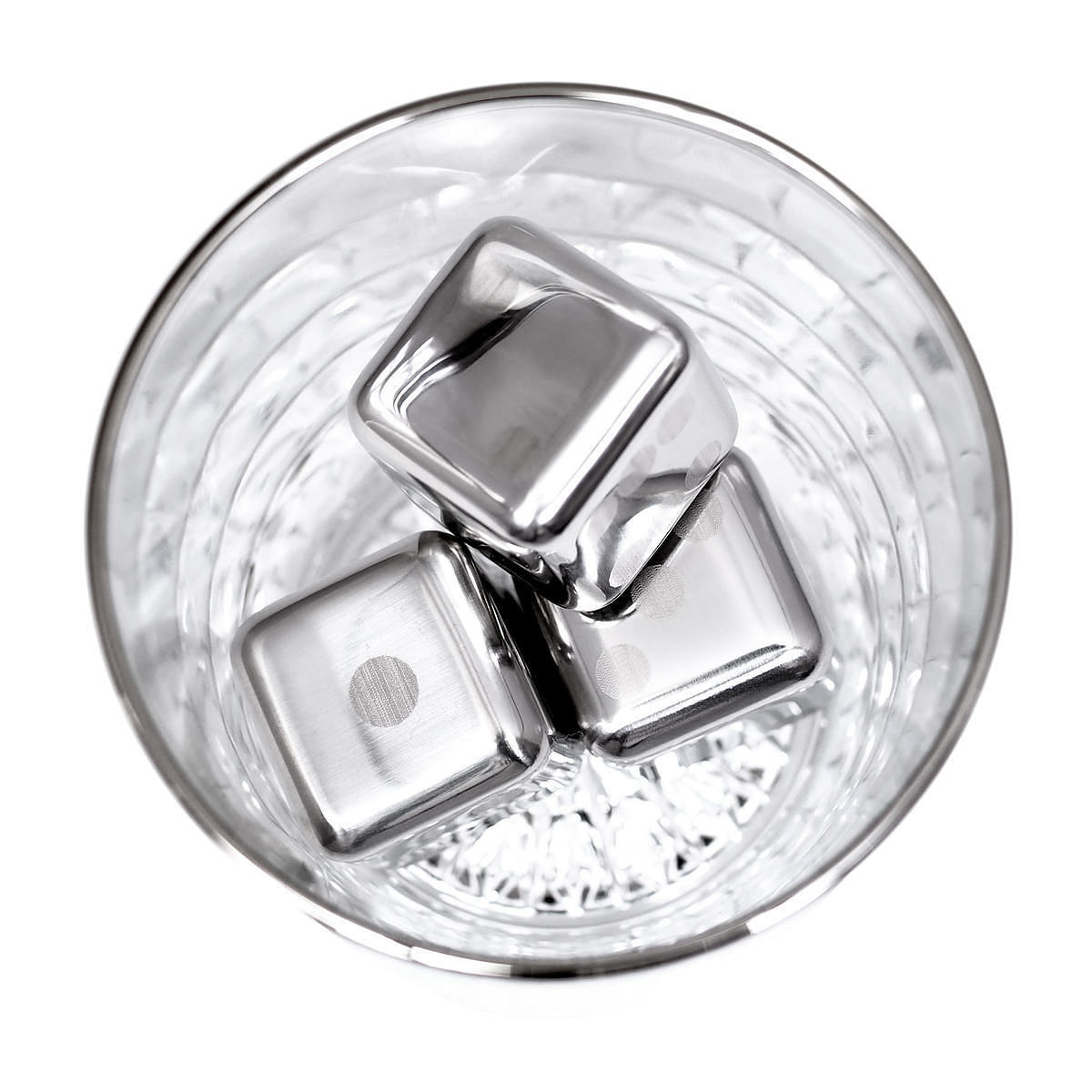 大口注文・法人のお問い合わせはこちら氷の代わりに使えるステンレス製アイスキューブ3個と底面のカットが美しいロックグラス2客のセットです。アイスキューブはおしゃれなさいころデザイン。