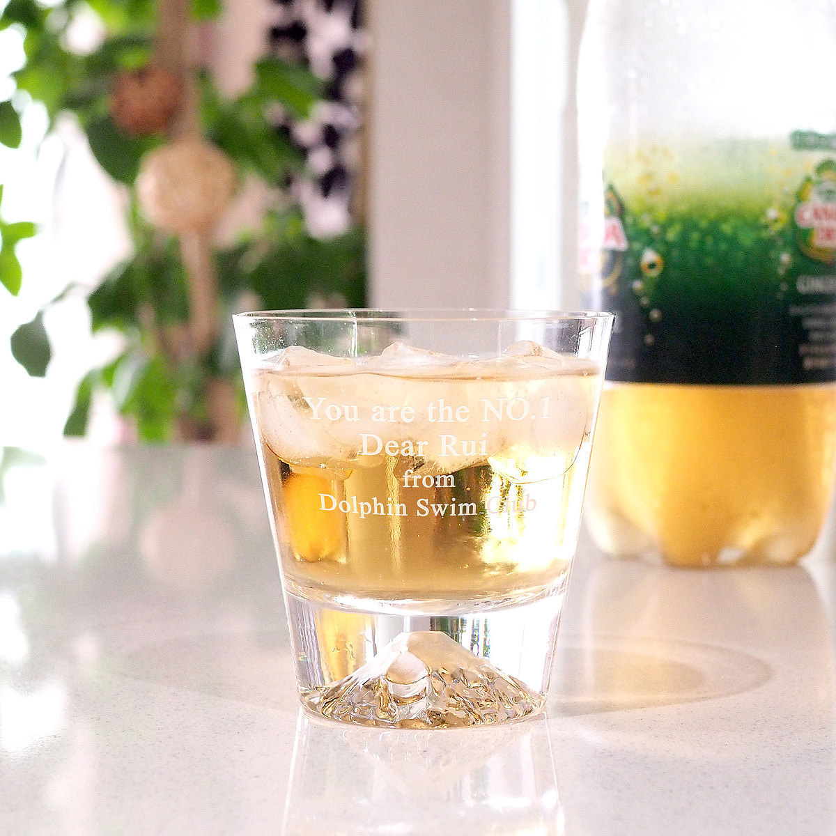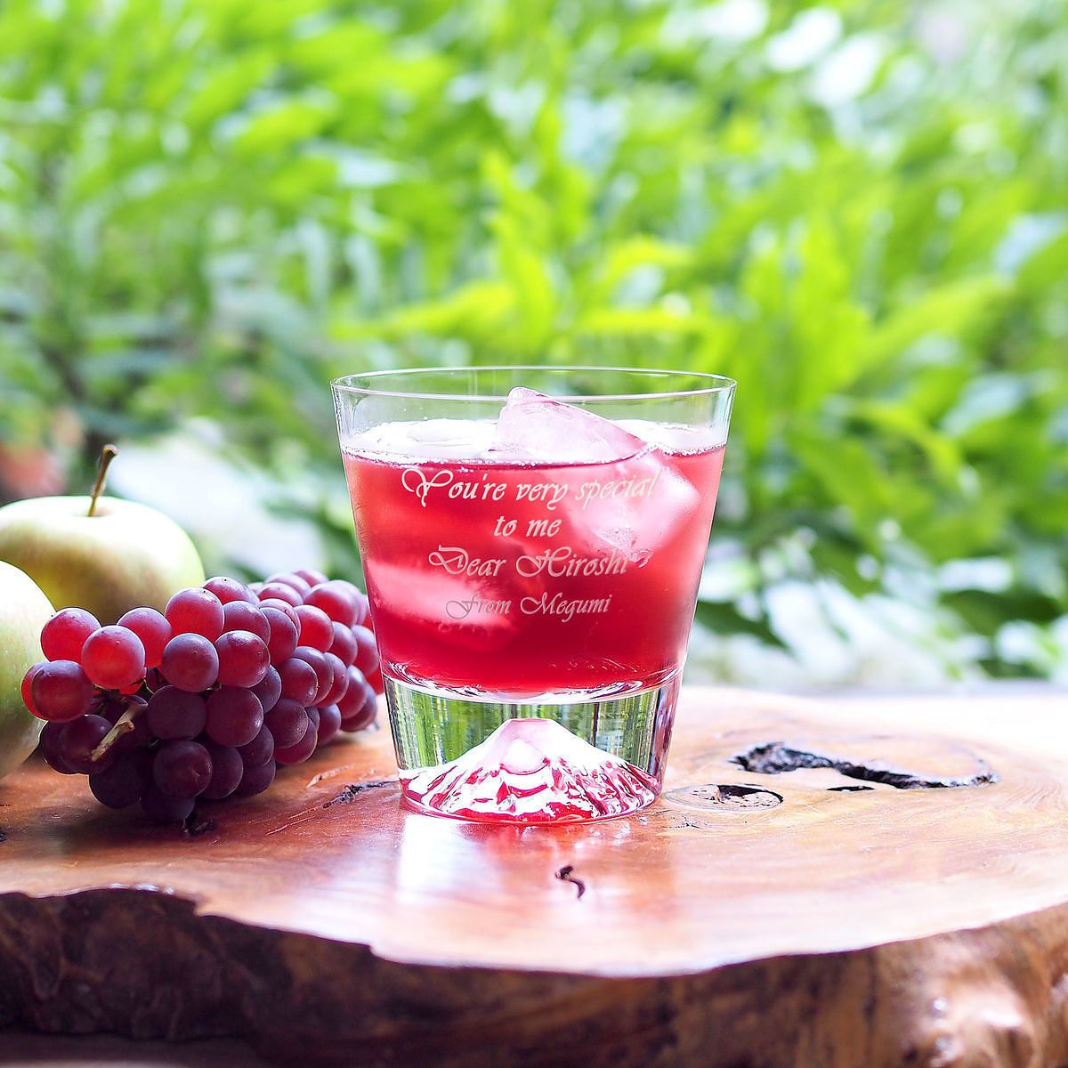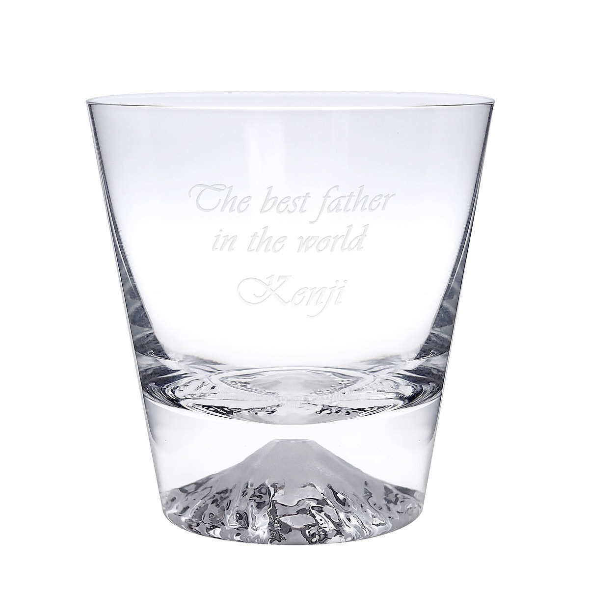 シーンやコンセプトに合わせたデザインやメッセージをレリーフ・プリントして、オーダーメイドギフトを創作している「2-U(トゥーユー)」のロックグラス。注ぐ飲み物が映り込み、底に輝く日本の象徴富士山をお楽しみください。ご希望のメッセージをお入れします。