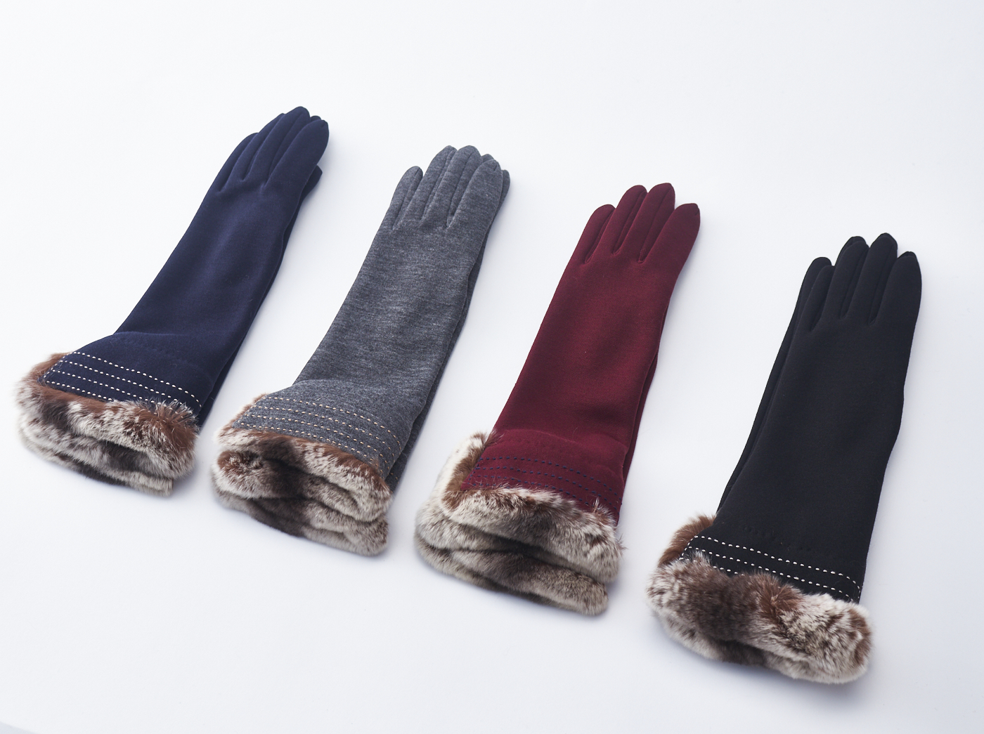 大口注文・法人のお問い合わせはこちら折り返しができるレッキスファー付きのラグジュアリーなデザイン。手首があたたかくてゴージャスに彩ります。