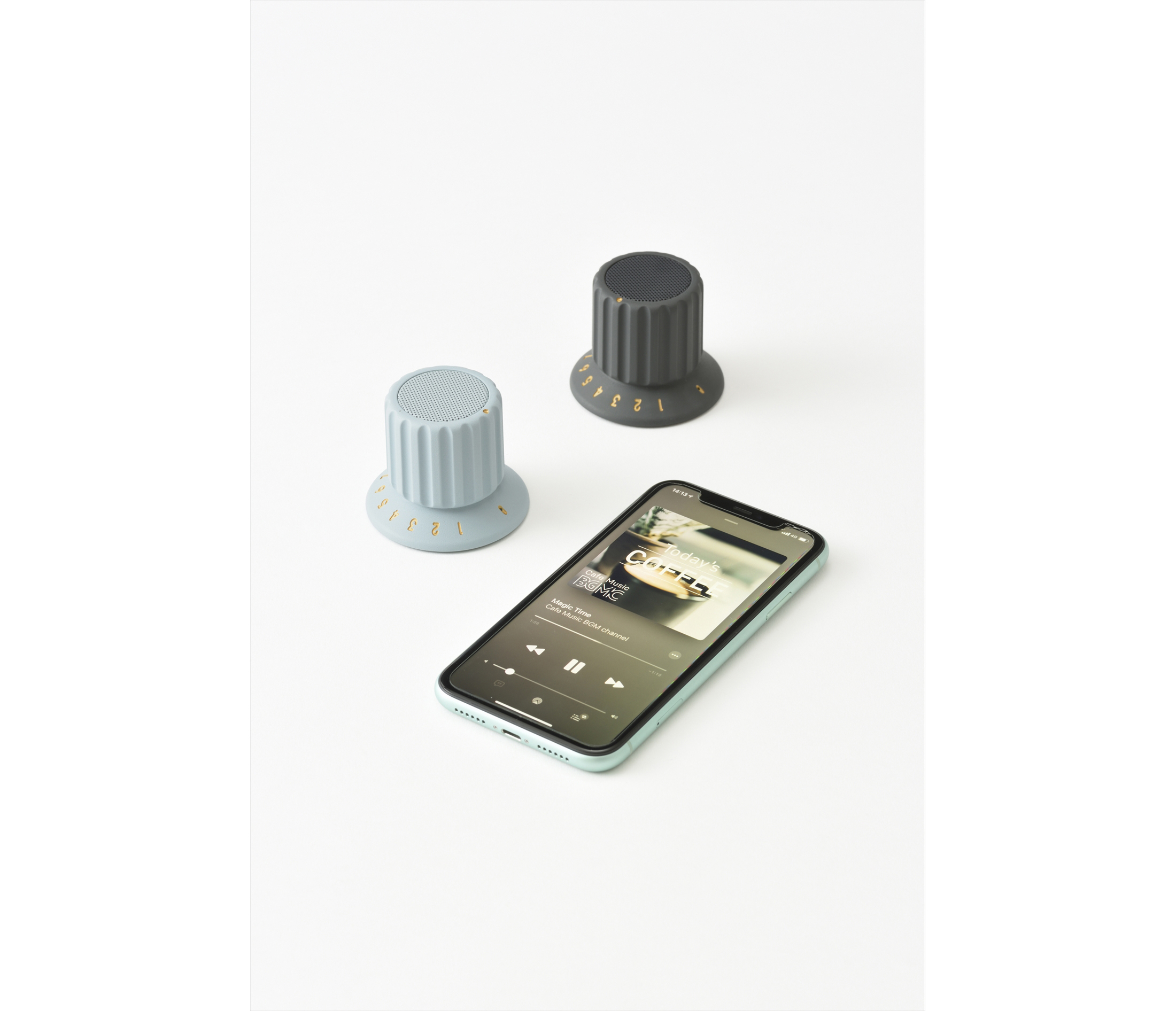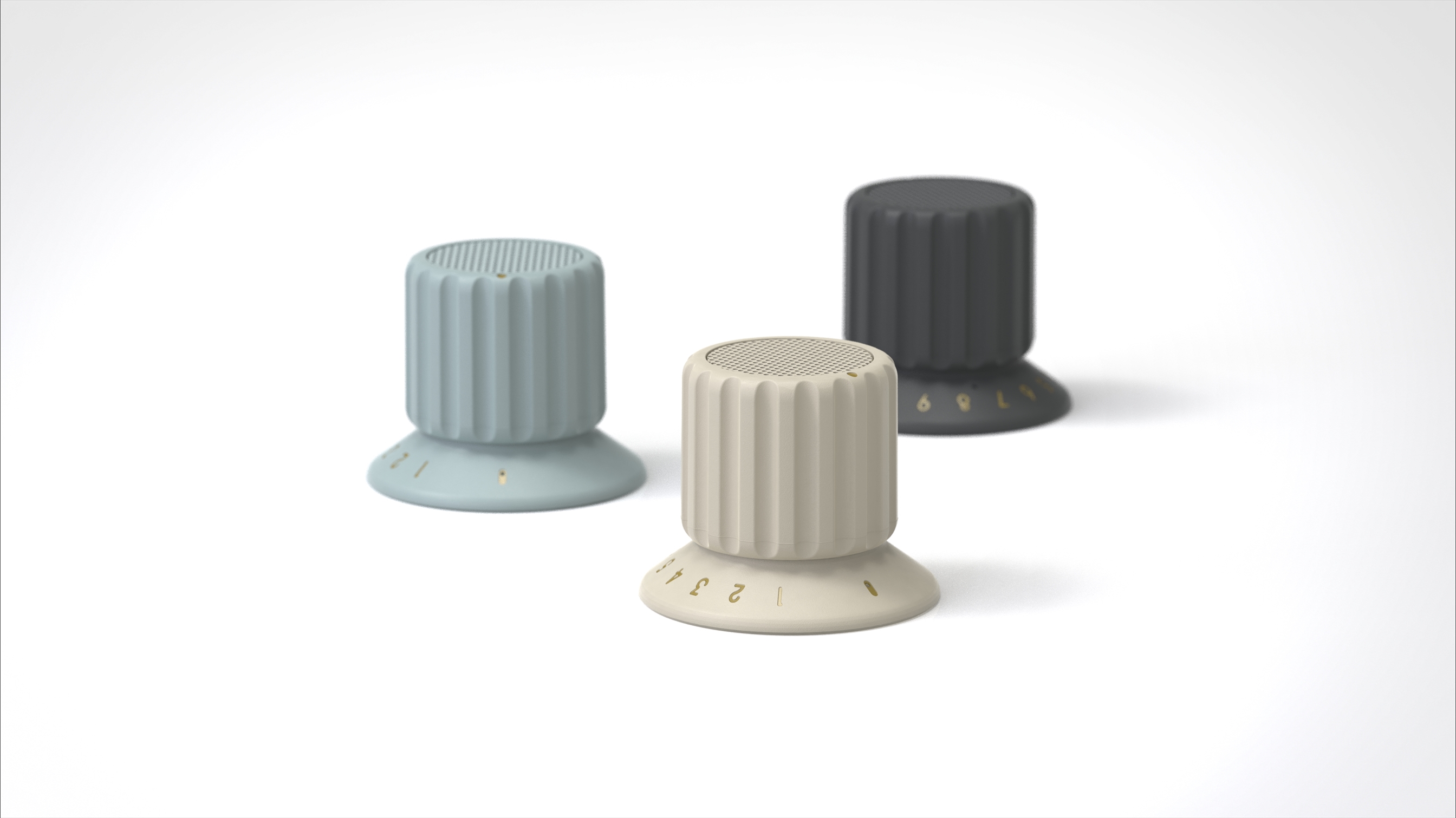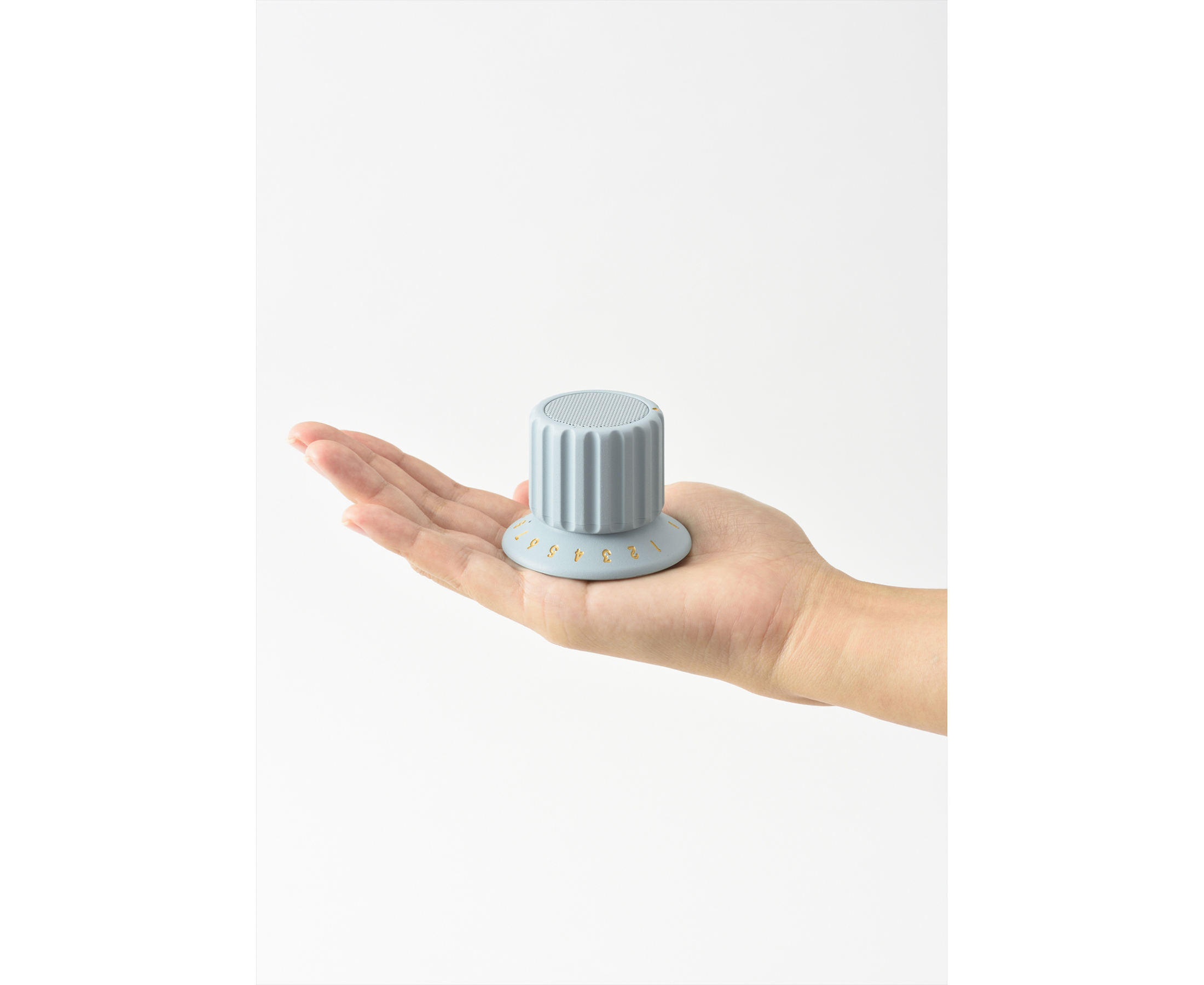 ノブを回して直感的にボリュームを調整できるユニークなデザイン。