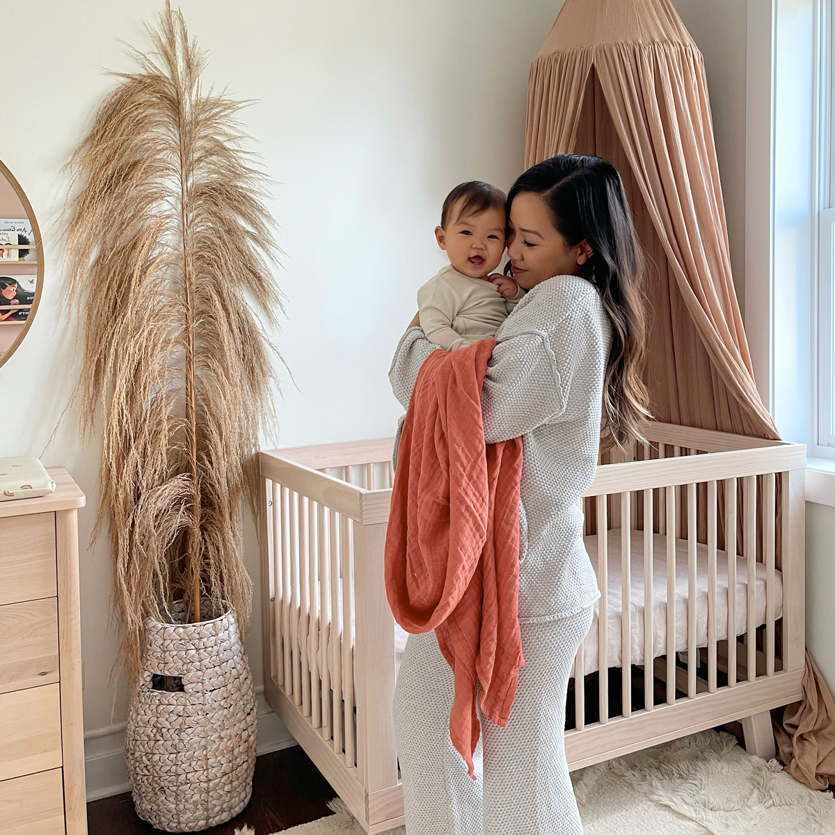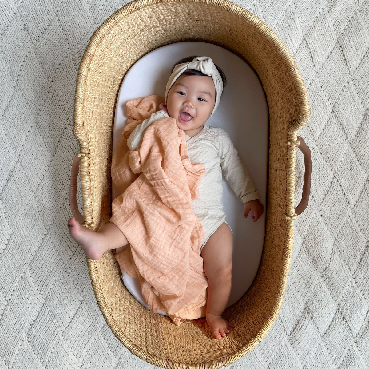 環境にも赤ちゃんのお肌にもやさしいコットン100%素材のスワドルセットは、出産祝いの贈り物にぴったり。 コットンモスリンは通気が良く、適度な温度を保つことができるので、デリケートな赤ちゃんにはぴったりの素材です。洗濯機で洗え、使えば使うほど柔らかくお肌になじんでくれます。 おくるみ以外にも様々な用途で活用できるため、お子さまの成長とともに長くお使いいただけます。