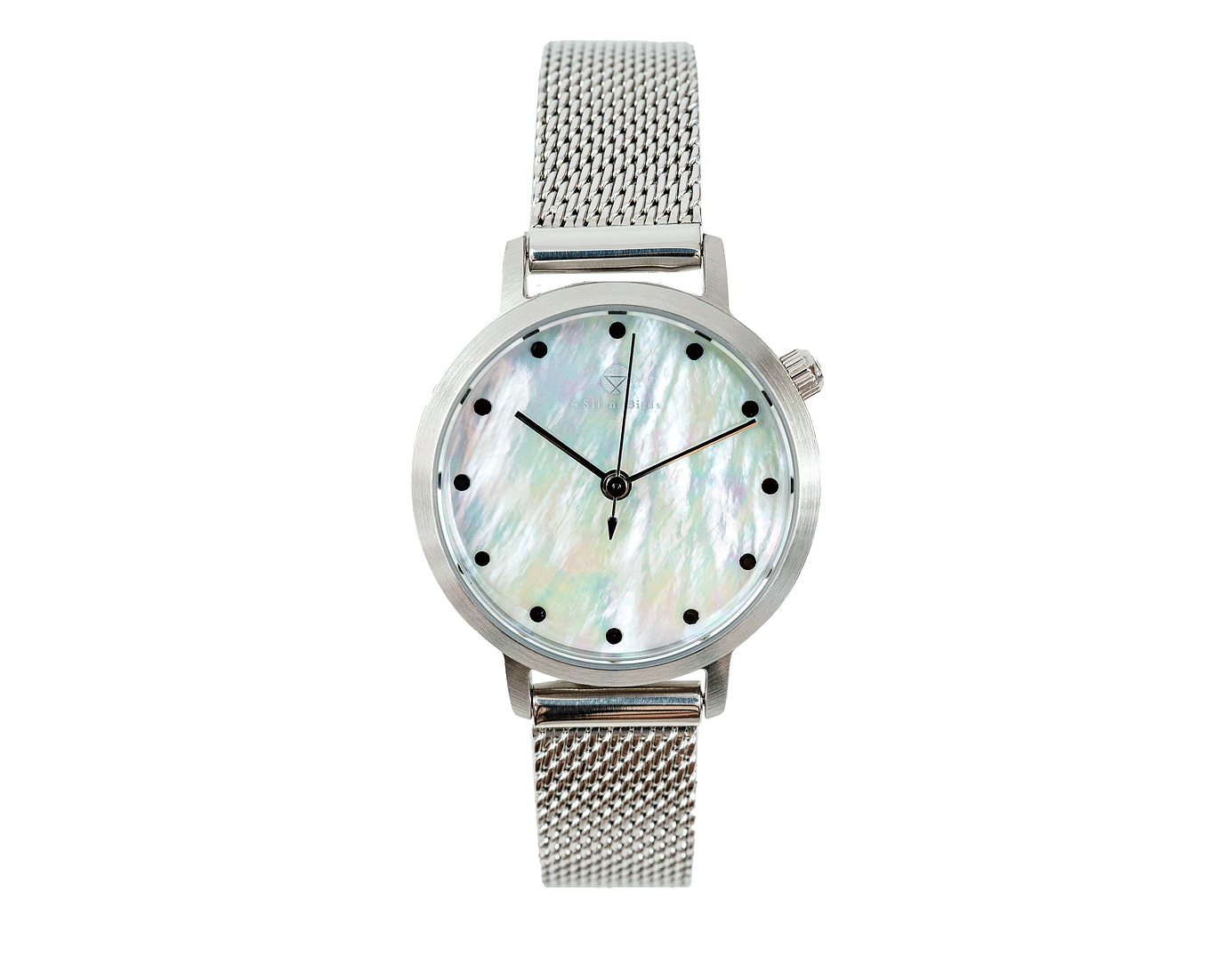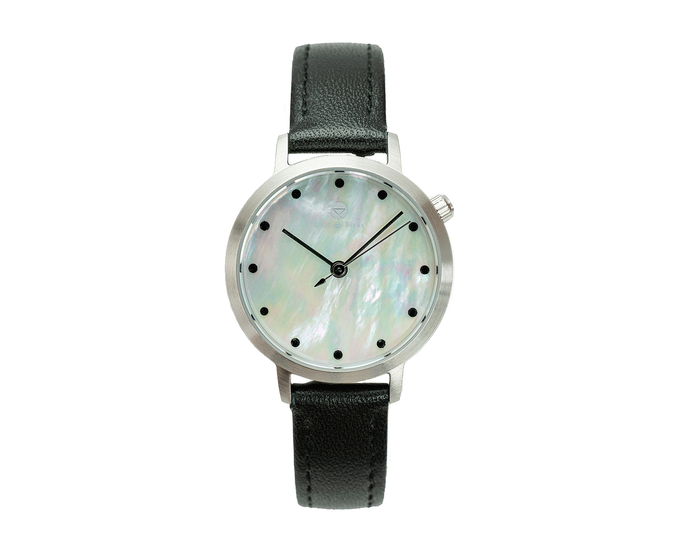 「4silentbirds(フォーサイレントバーズ)」がお届けする、レディースウォッチSNOWY (28MM)です。高級感あるブラッシュド・シルバーケースと、盤面のホワイトマザーオブパールが美しく輝きます。インデックスにはブラックオニキスを使用し、シャープな印象を与えます。