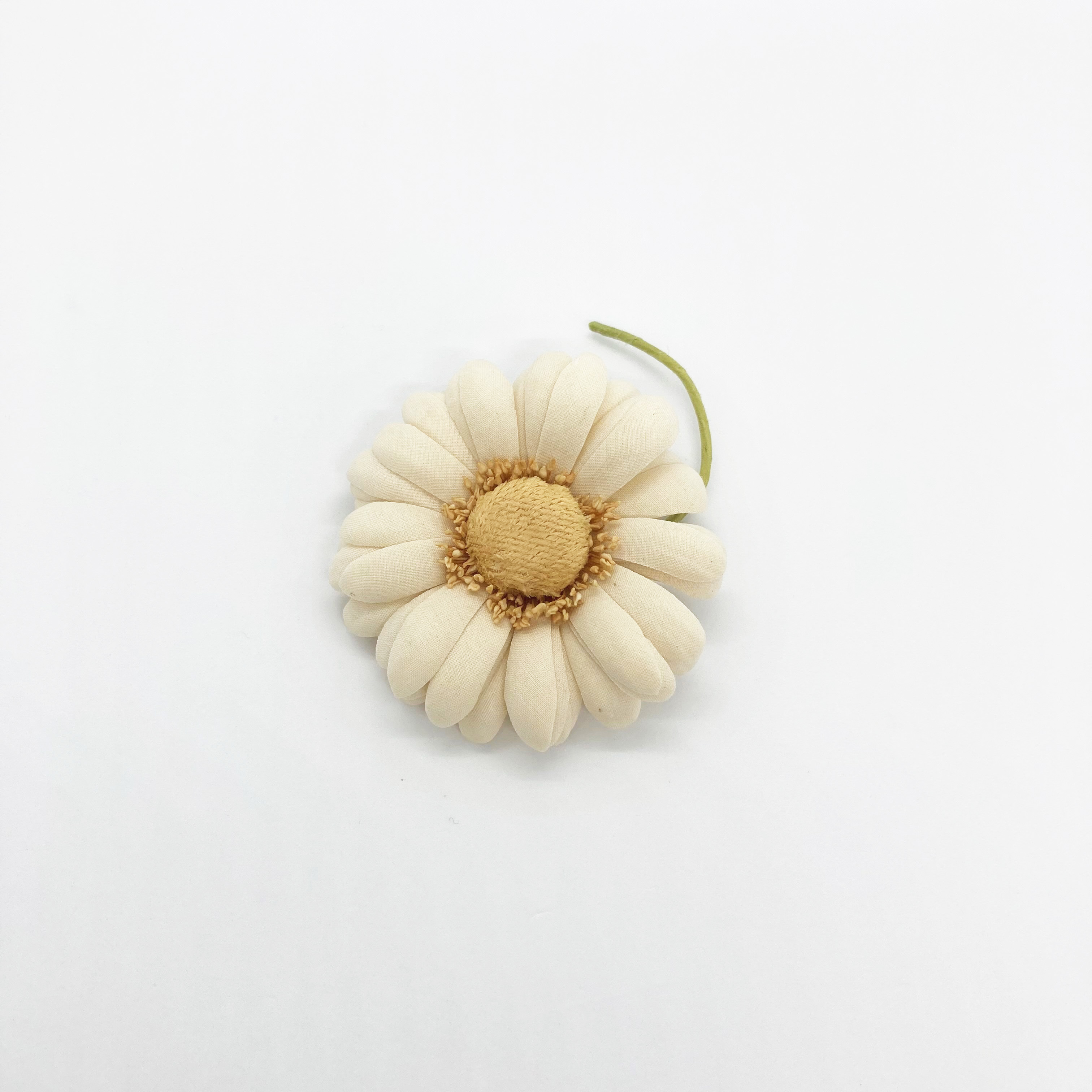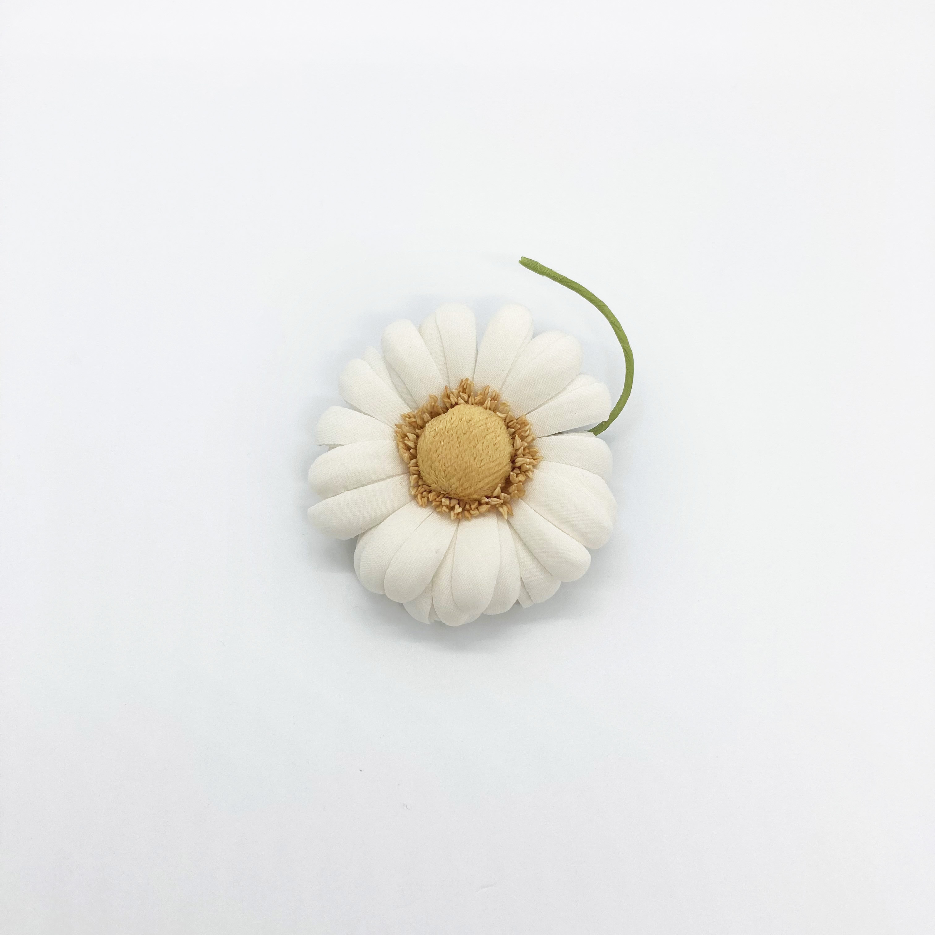 「アトリエ染花」が長きに渡り作り続けてきた定番商品のお花のコサージュ。くすみのないきれいな色の花びらが何枚も重なり、ふっくらと咲いたマーガレットは小ぶりながらにも存在感はしっかり。コーディネートが明るくなる大人かわいいコサージュです。