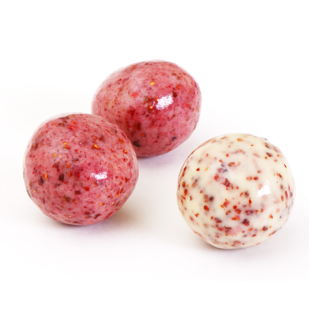 ストロベリージャムをベルギー産のホワイトチョコレートでコーティングしました。ホワイトチョコレートに練り込んだドライストロベリーに加え、ストロベリージャム中にも苺の果肉が入っており、苺の酸味がしっかりと効いたバランスの良いチョコレートに仕上がっています。 また、アクセントにオレンジブロッサムの風味付けをし、スパイスのウイキョウとティユールを混ぜ込んでいるので、大人の味に仕上がっています。