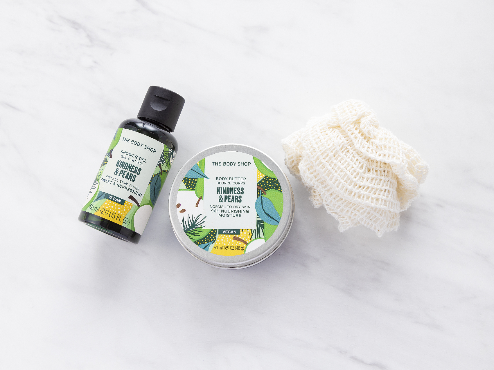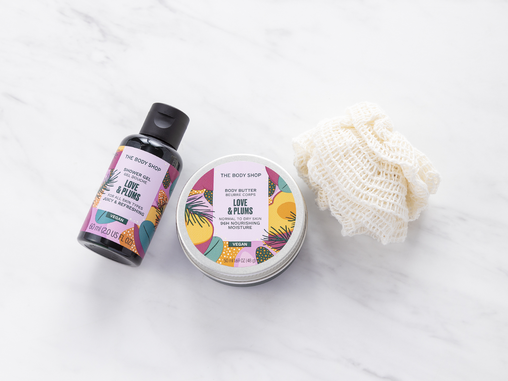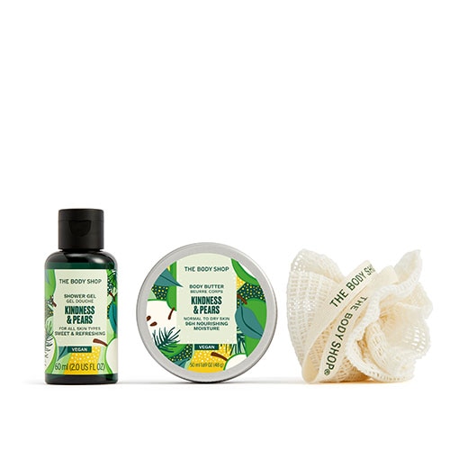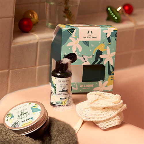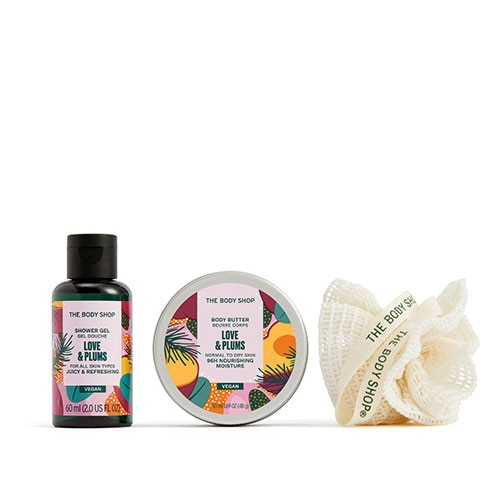 世界60カ国以上に3000店舗以上を展開する「THE BODY SHOP(ザボディショップ)」の、ミニボディケアギフトです。数量限定のジャスミン、プラム、ペアの3種類の香りが登場。うるおいを残しながら洗うシャワージェルと、乾燥した肌をしっとりうるおすミニサイズのボディバターをセットにしました。