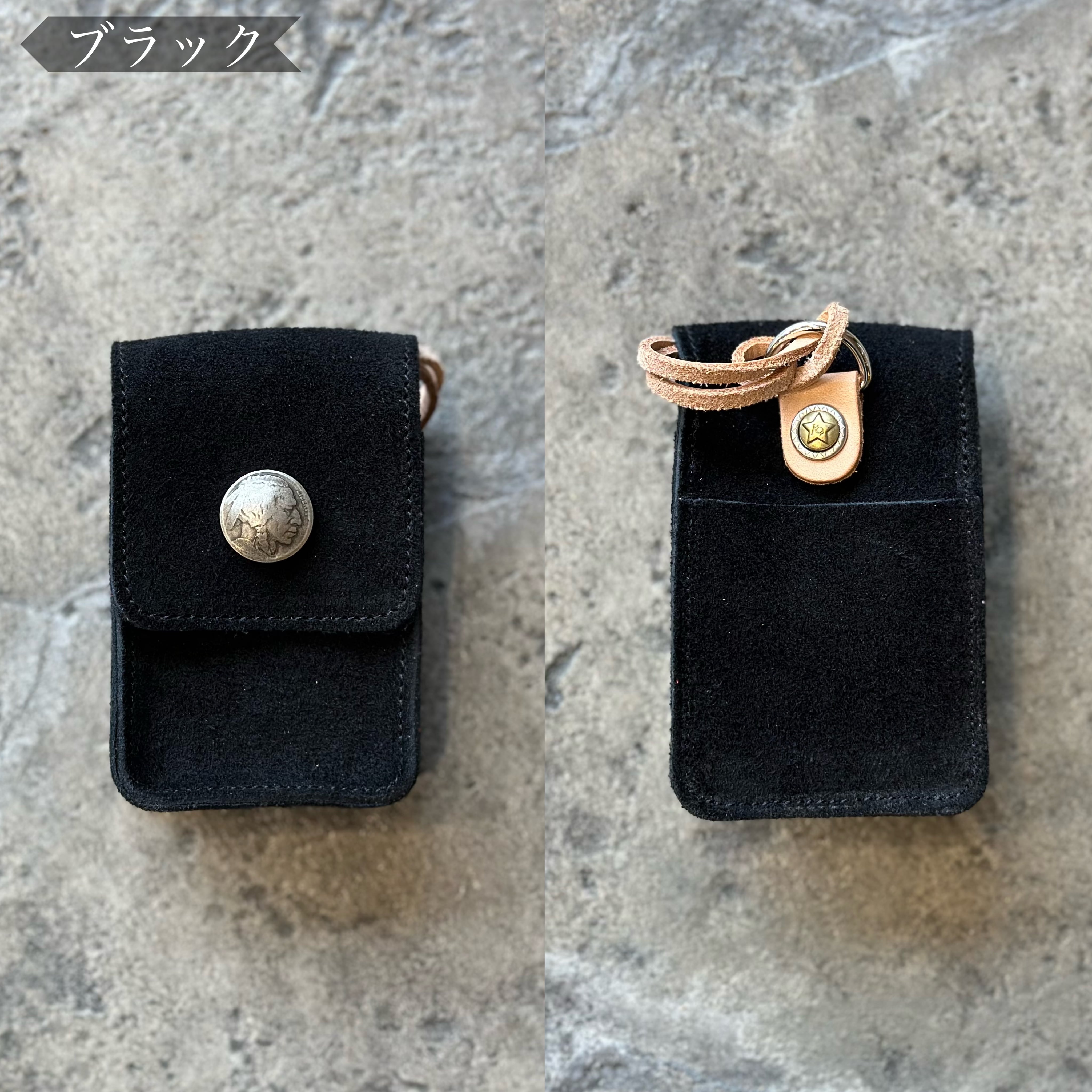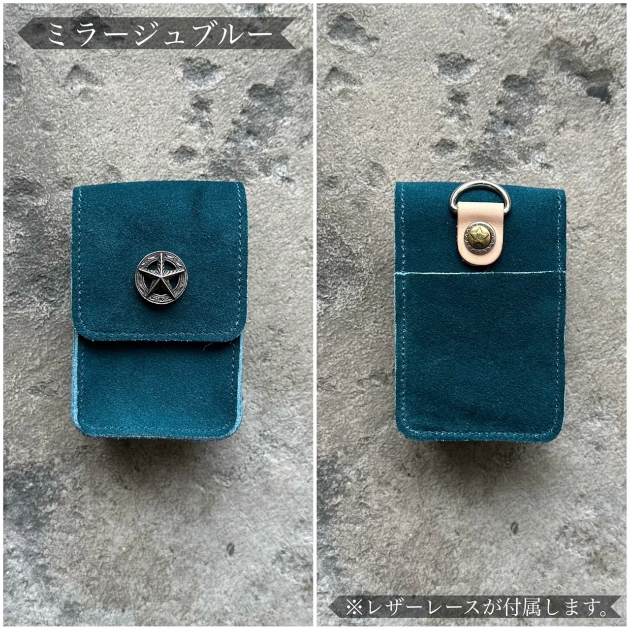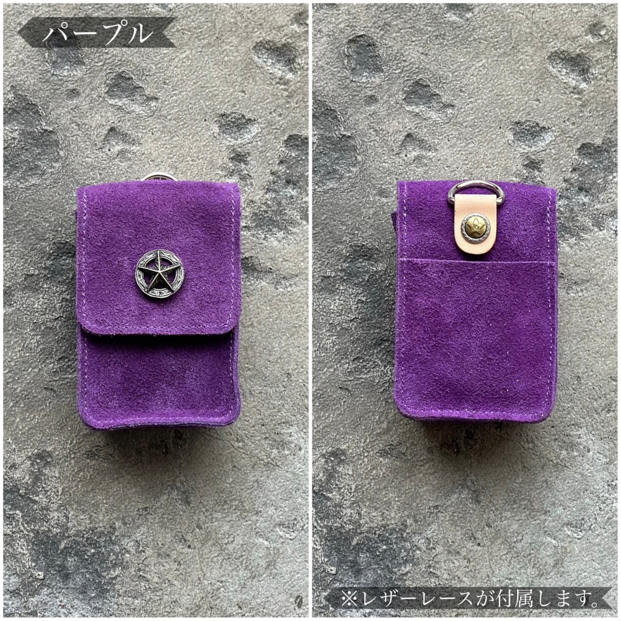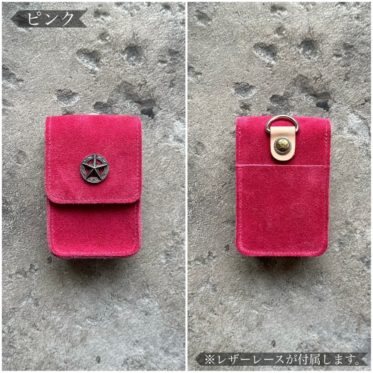 レザーブランド「KC,s(ケイシイズ)」のタバコケース。上質のスウェード(牛皮革)を使用した柔らかな素材と、6色から選べる鮮やかなカラーが人気です。背面に革ヒモが付いており、首からぶらさげたり、キーリング等に付けぶらさげることもできます。カードケース・ポケット付き。