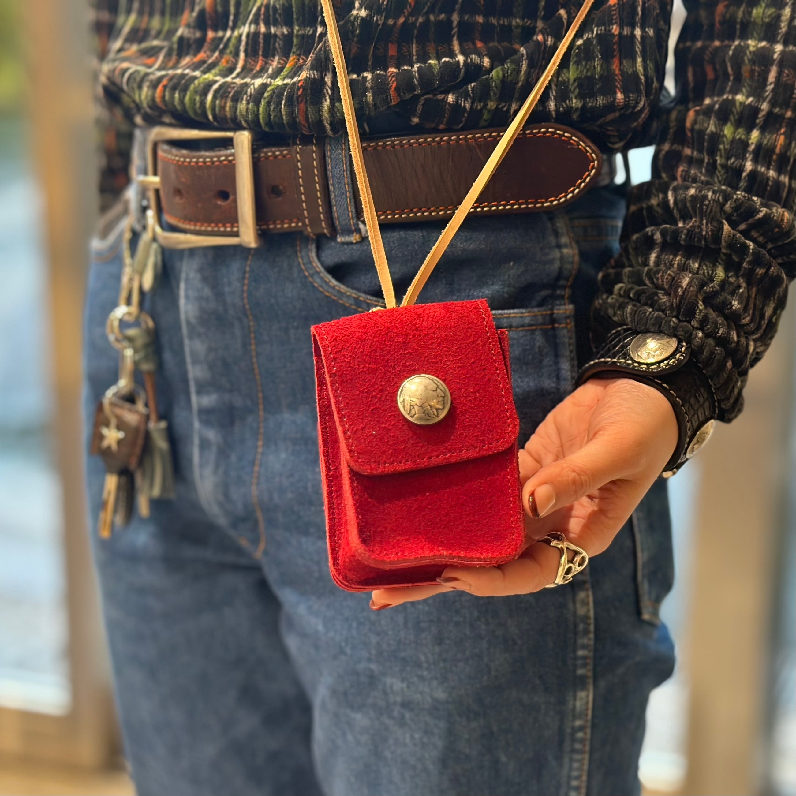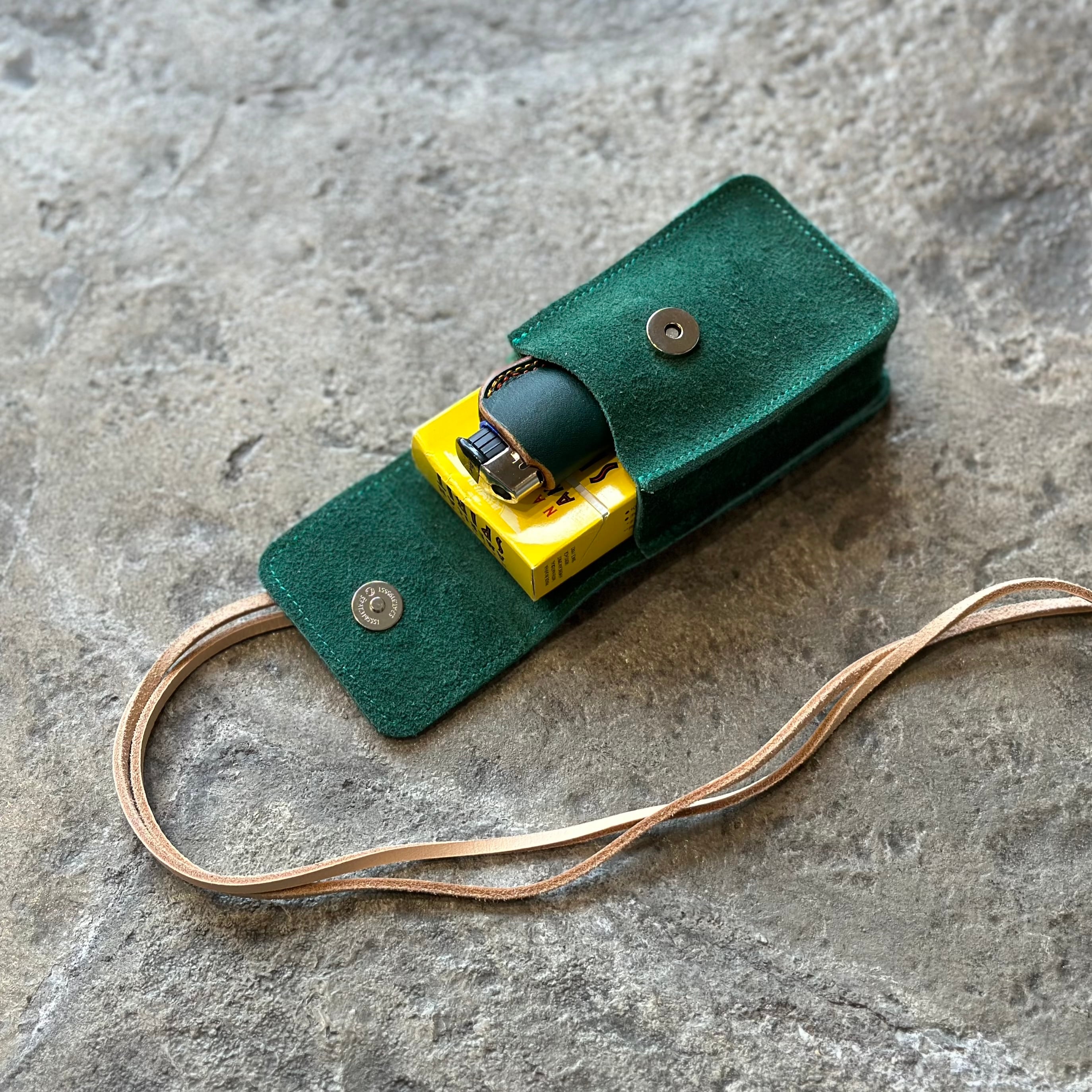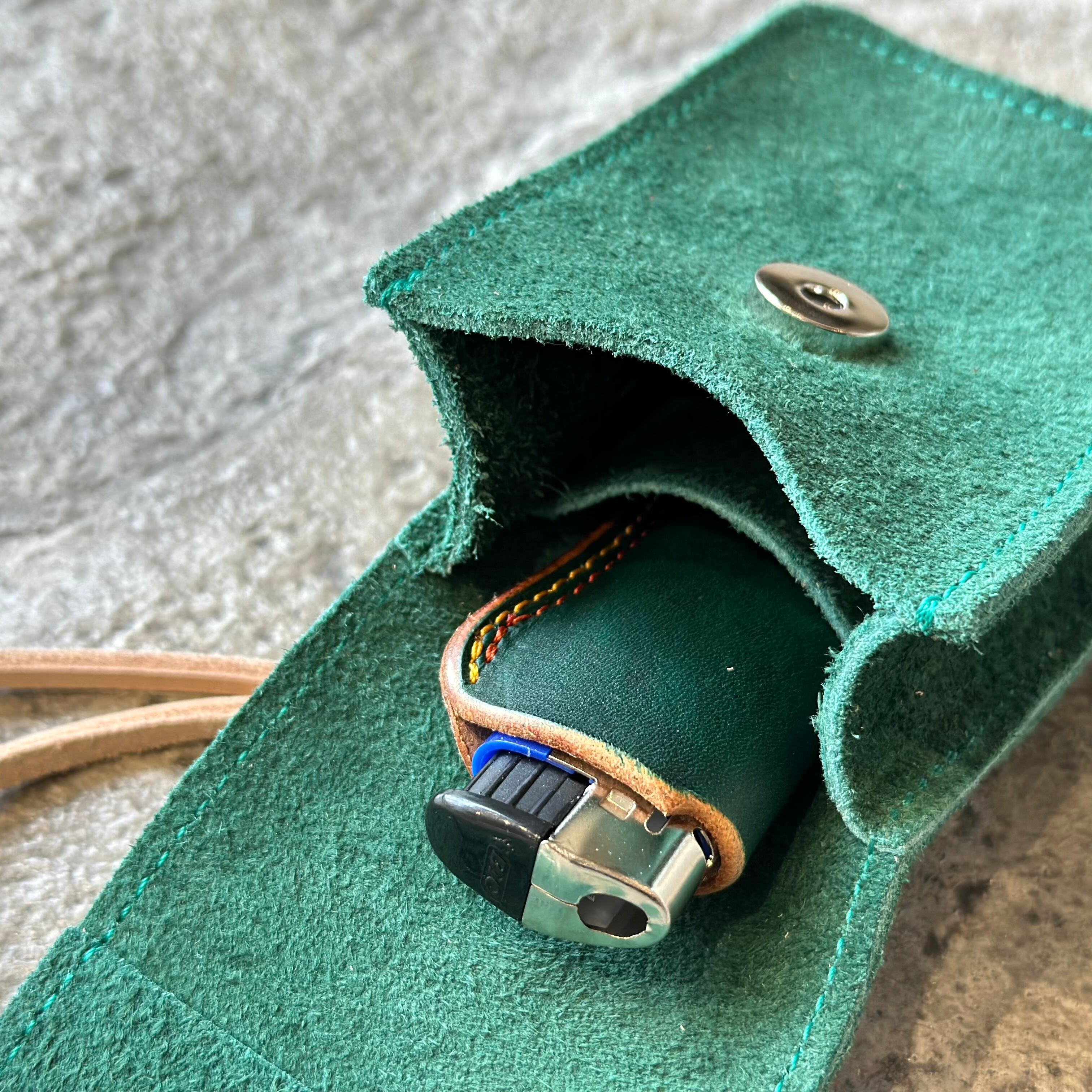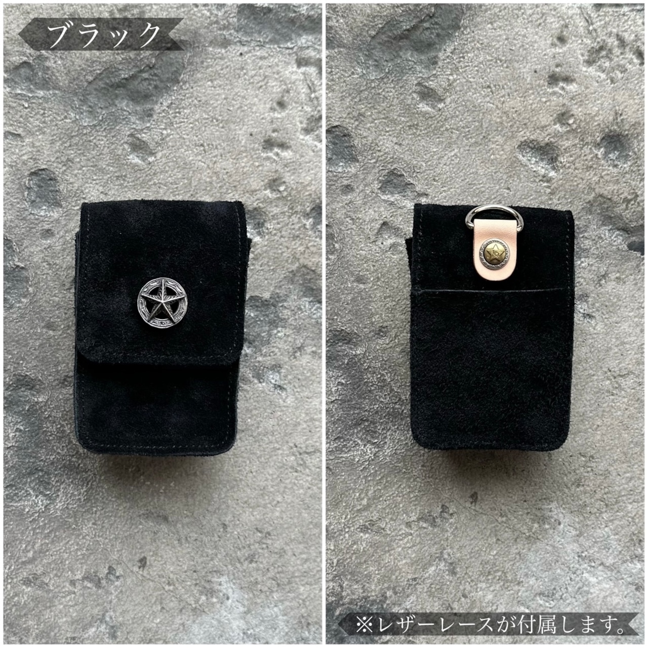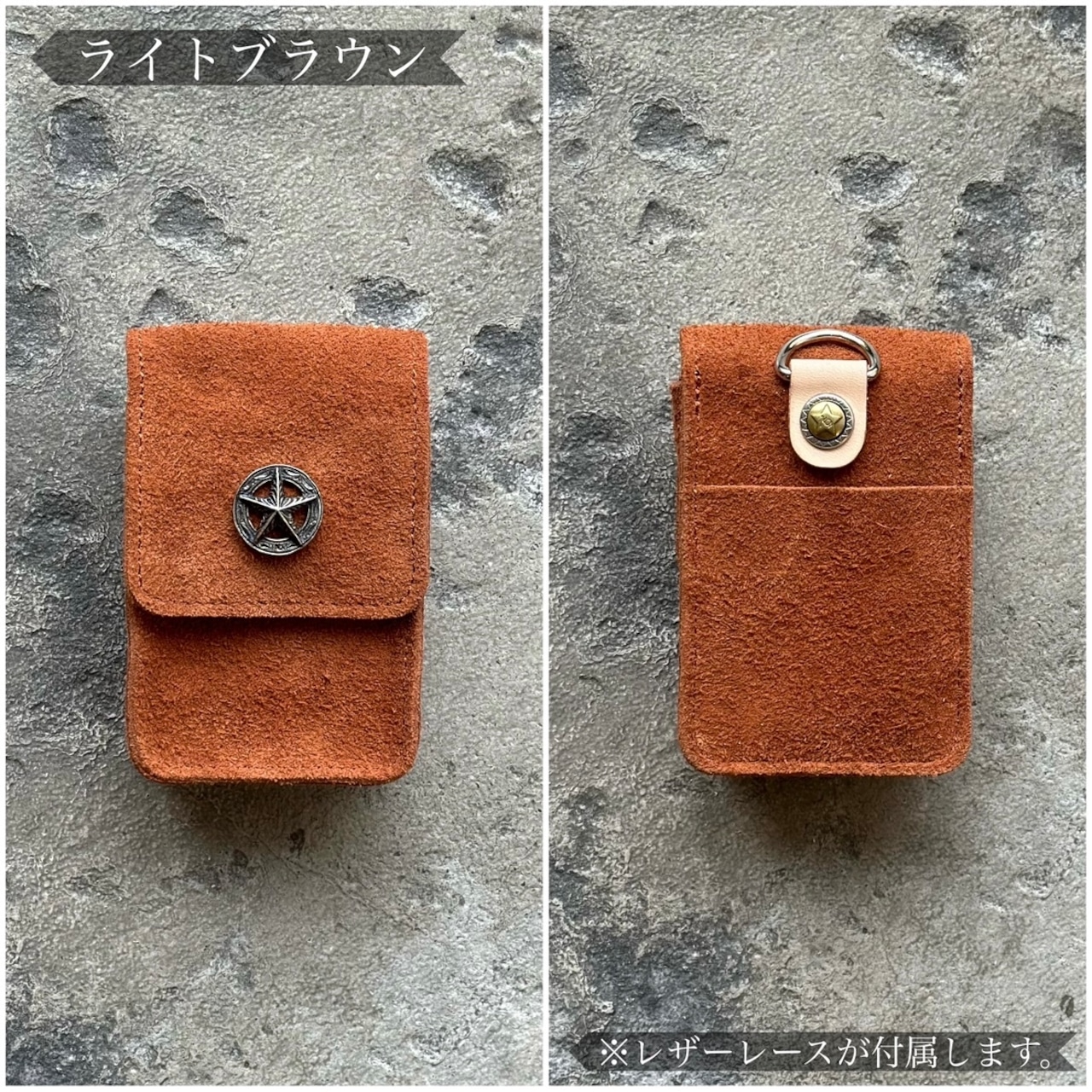 レザーブランド「KC,s(ケイシイズ)」のタバコケース。上質のスウェード(牛皮革)を使用した柔らかな素材と、6色から選べる鮮やかなカラーが人気です。背面に革ヒモが付いており、首からぶらさげたり、キーリング等に付けぶらさげることもできます。カードケース・ポケット付き。