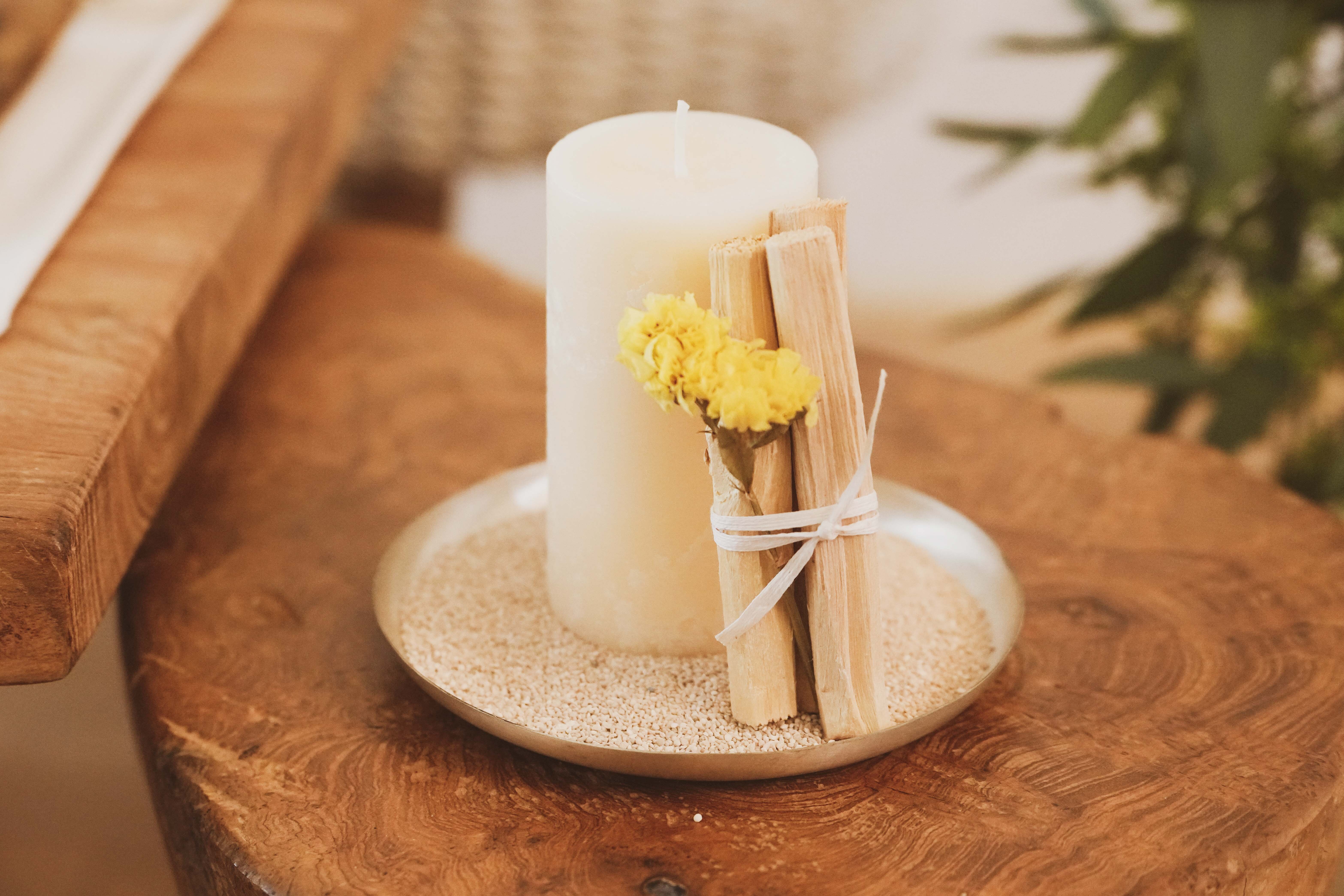 大口注文・法人のお問い合わせはこちら優しい色合いと風合いを持つキャンドルとセットになったパロサント。パロサント初心者の方や、よりリラックスできる時間を過ごしたい方におすすめのキャンドルです。どんなインテリアにもさりげなく馴染み、温かな空間を作ってくれる優しい色合いは日本の伝統色「くちなし」に由来します。 倉敷市の職人の手で丁寧に1つ1つ手づくりしています。土や樹木のようなイメージのナチュラルな風合いは異なる表情を放ち、飽きのこない落ち着いた空間を演出してくれます。環境にやさしい「グリーンワックス」を一部配合。自然に配慮したキャンドルです。