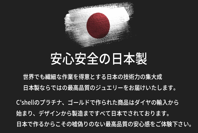 C'shellでは、自社でダイヤモンドを輸入後、商品のデザインから制作まで0から全て行っております。そのため、低単価でかつ高品質な商品を日本国内することができております。 手にとってもらい、絶対に可愛いと思ってもらえる商品だけを作ることを心がけておりますため、お客様に喜んで頂くことが多く、リピート率が非常に高いことがC'shellの特徴です。
