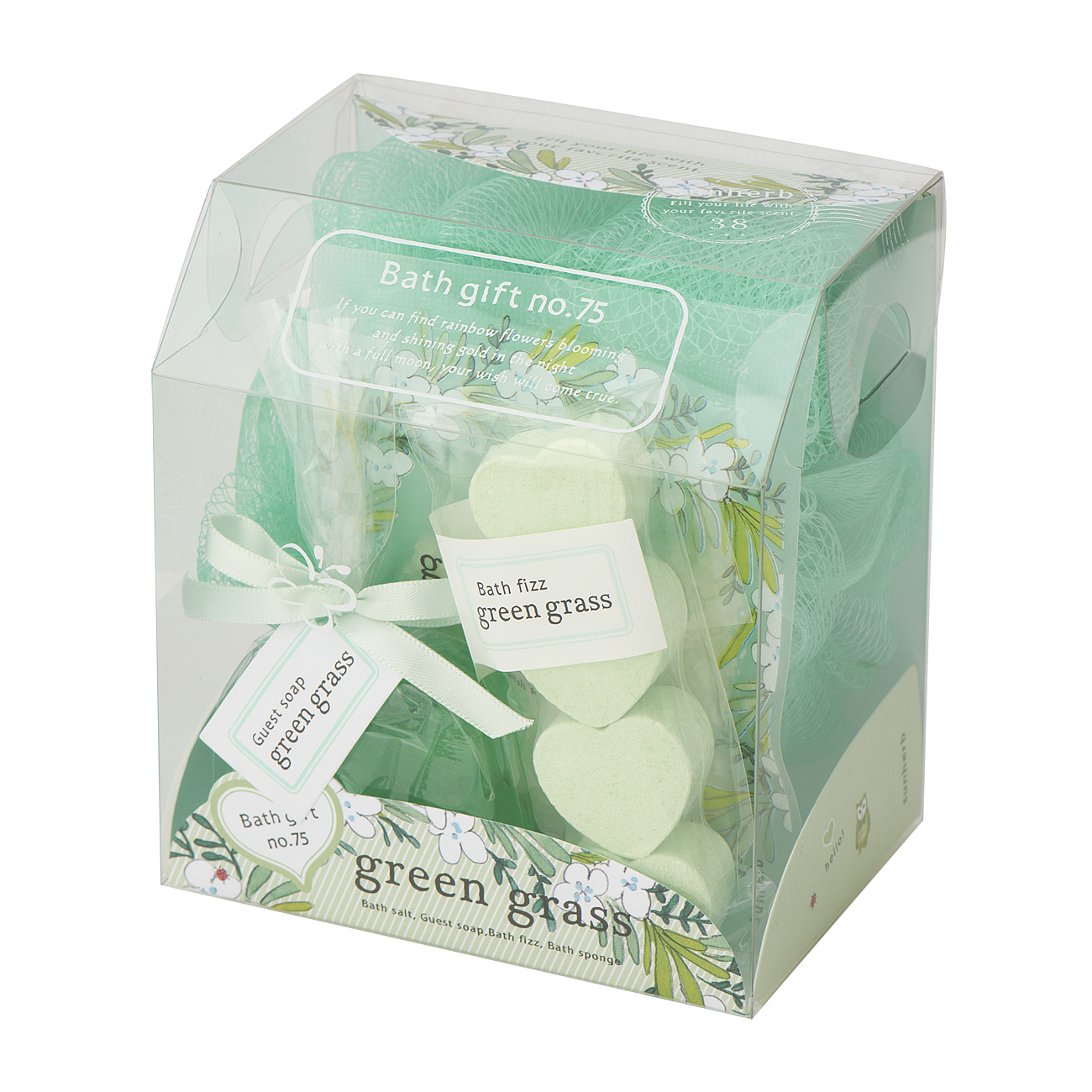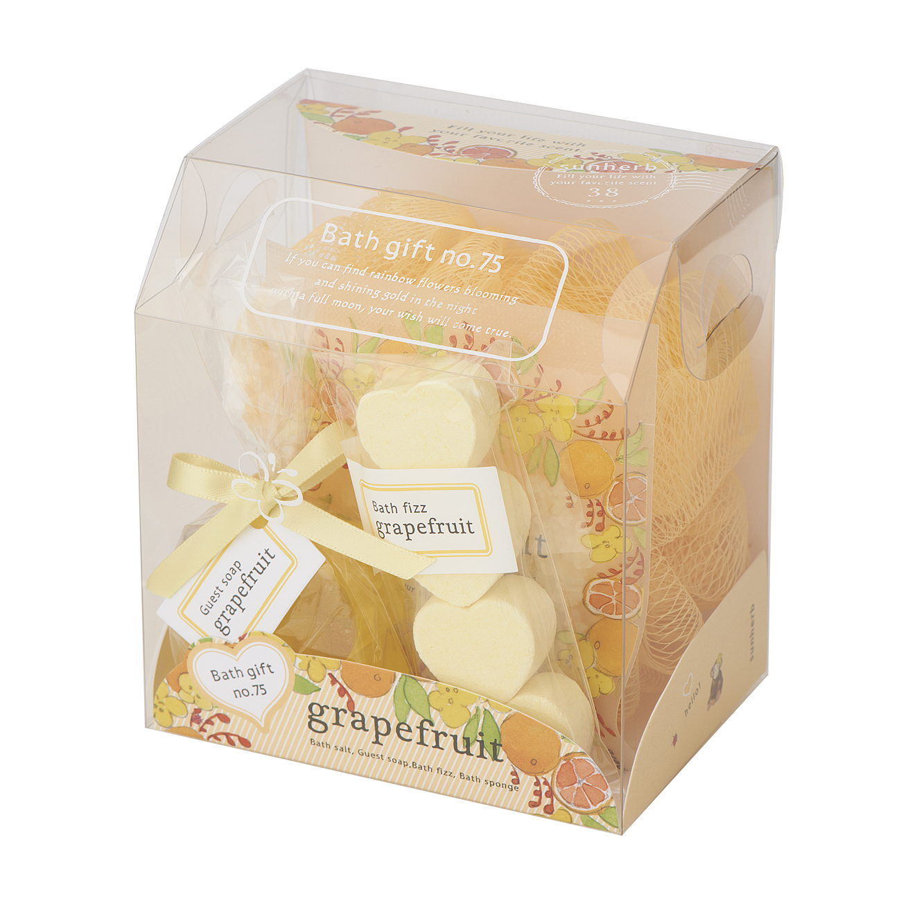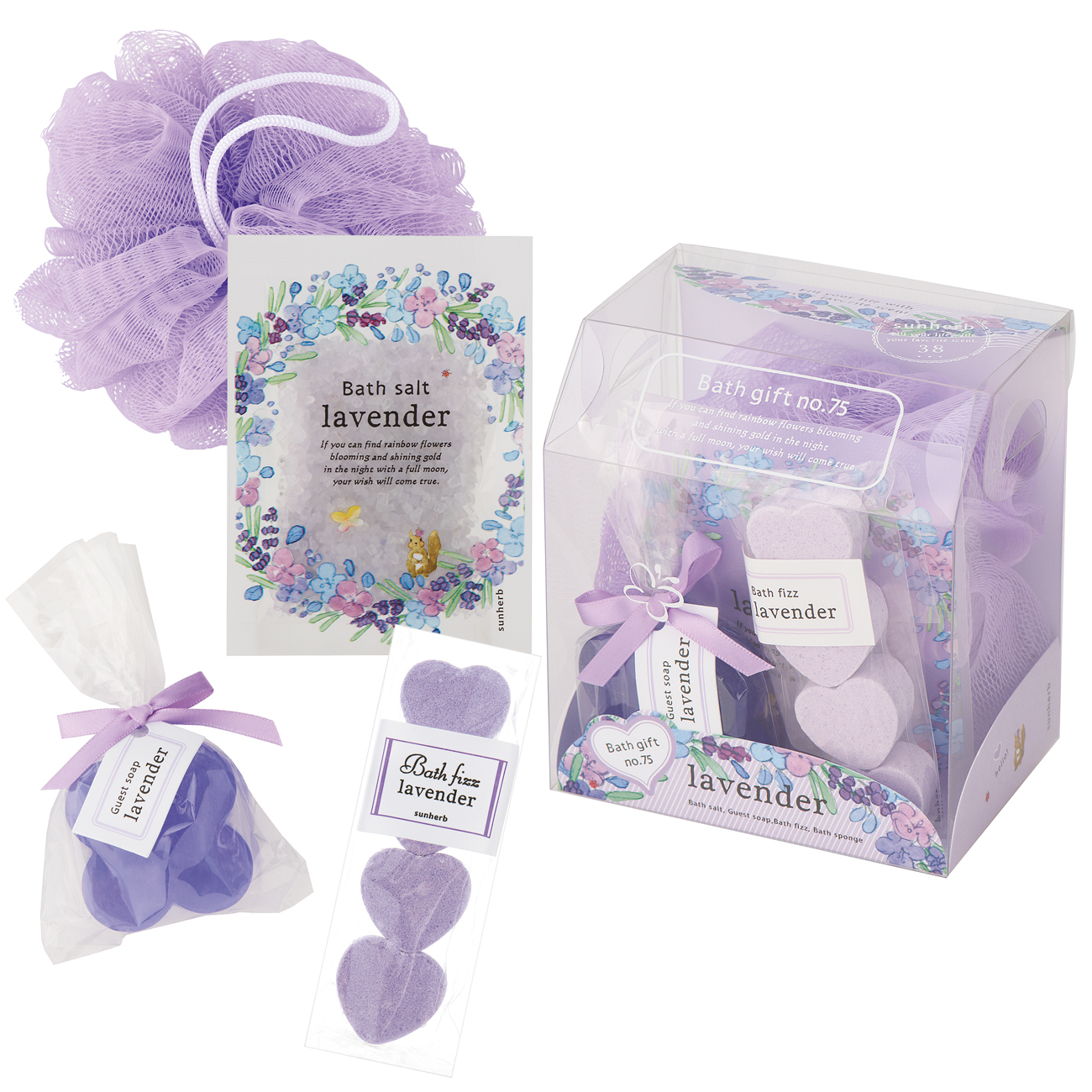 バスグッズは、バスソルト、ゲストソープ、バスフィズ、バススポンジが入った豪華なセットになっています。