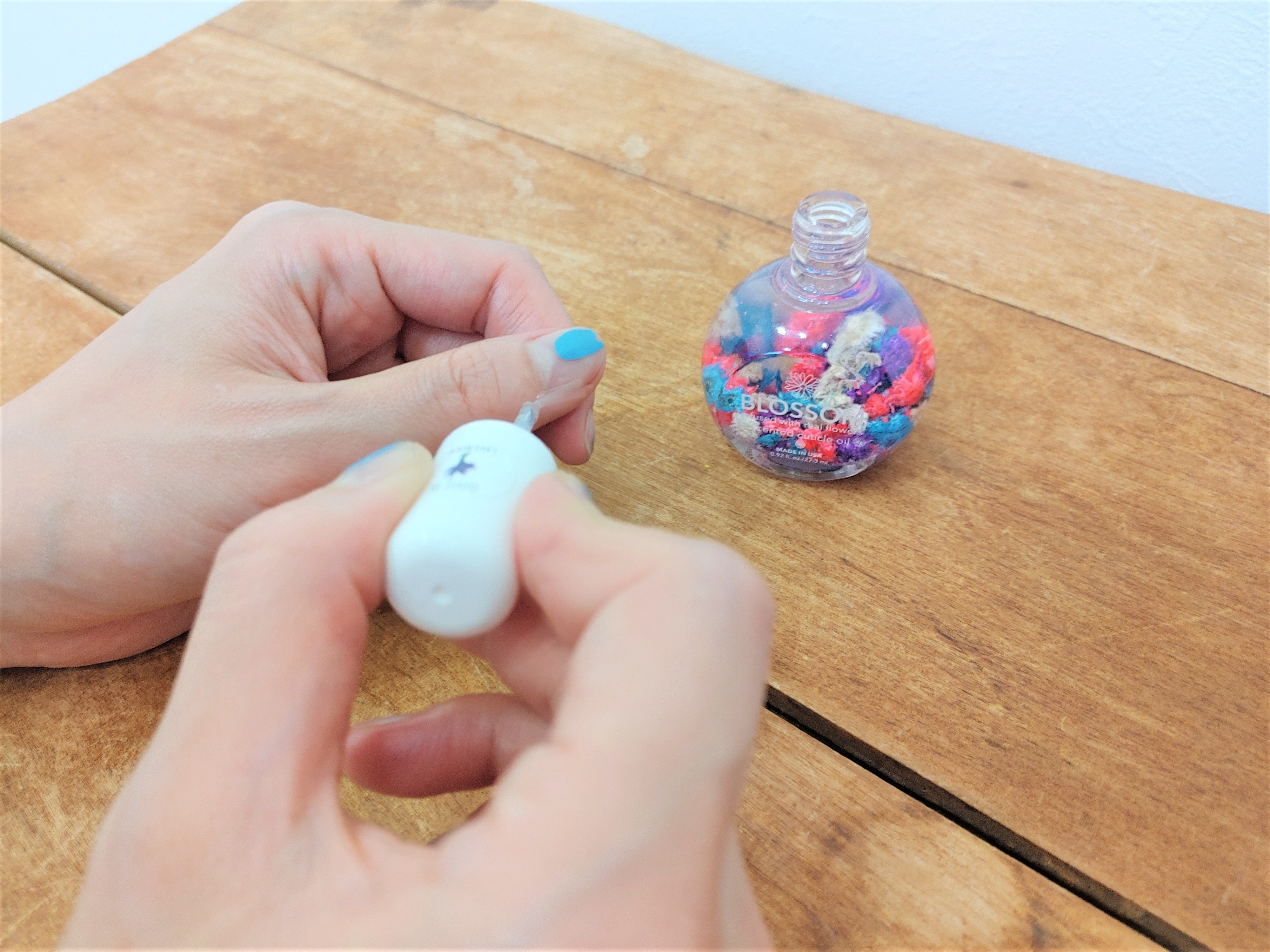 Blossomのブランドを代表する人気のアイテム“ネイルオイル”。甘皮に塗り優しくマッサージをすることで、甘皮が柔らかくなり、ささくれ予防にもなります。健康的な爪を保ち、使うたびに素敵な香りが広がります。カラフルなお花がたくさん入っていて、見た目も可愛いく、ハーバリウムの様。インテリアとしても可愛いネイルオイルです。 ※パッケージがイメージと異なる場合があります