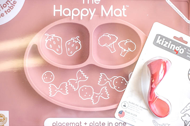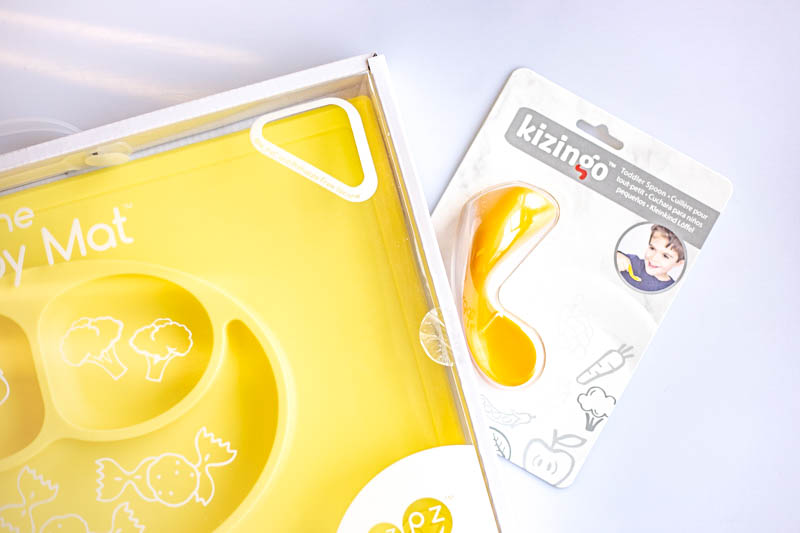 食べこぼしをキャッチするベビー食器【ezpz】と、人口工学に基づいた、お子様が"自分で"食べれるスプーン【Kizingo】のセット。