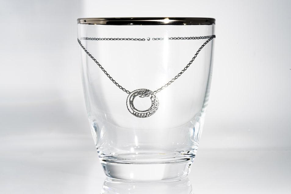 ドリンクを注げばチェーンの柄が水面に写りこんで揺れ、優雅な時間を演出します。
