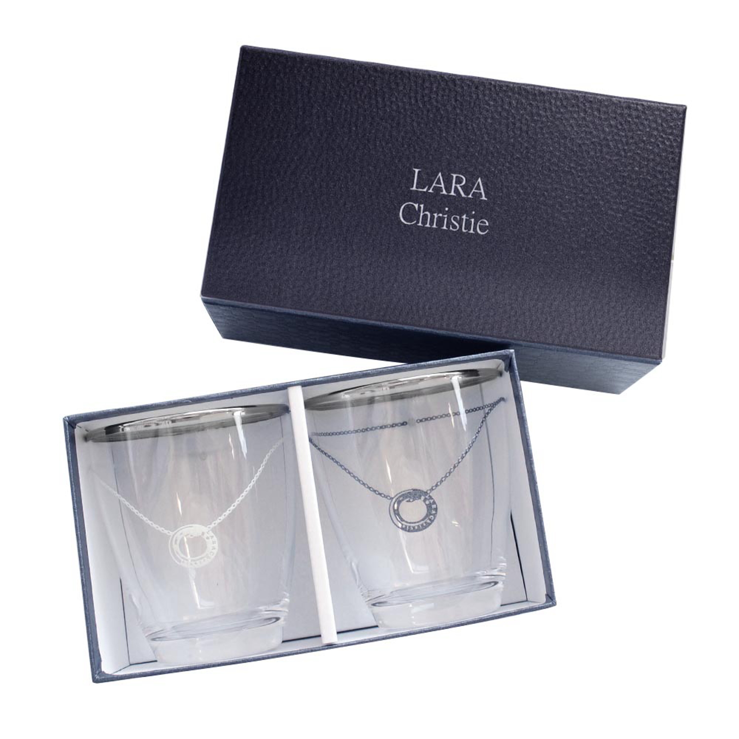 大口注文・法人のお問い合わせはこちらジュエリーブランド「LARA Christie(ララ クリスティー)」屈指の人気ジュエリー「ローラシアネックレス」がデザインされた、高級感溢れるペアグラスです。 流行に左右されない洗練されたシンプルなデザインで、シーズンを問わず、記念日などの贈り物としておすすめです。