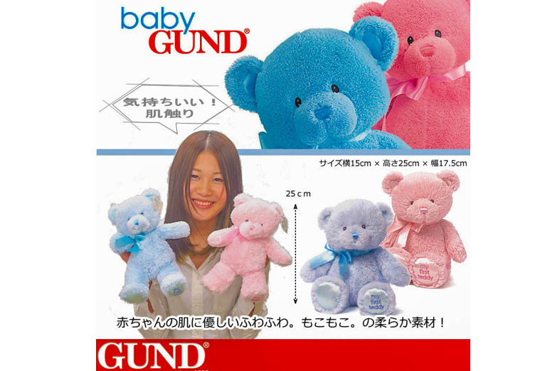 人気のGUND babyのテディベアは品質も良く、ふわふわ、もこもこで赤ちゃんにも優しい素材で作られています。