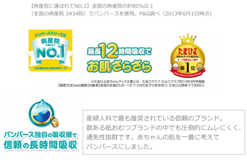 使用されているおむつは、パンパースの紙おむつです。 枚数はたっぷりの46枚です。 パンパース独自の吸収層で、分散してすぐに吸収するため、 おしっこを肌によせつけず、最長で12時間お肌がさらさらです。 また通気性もバッチリで、赤ちゃんのお肌を快適に包みます。
