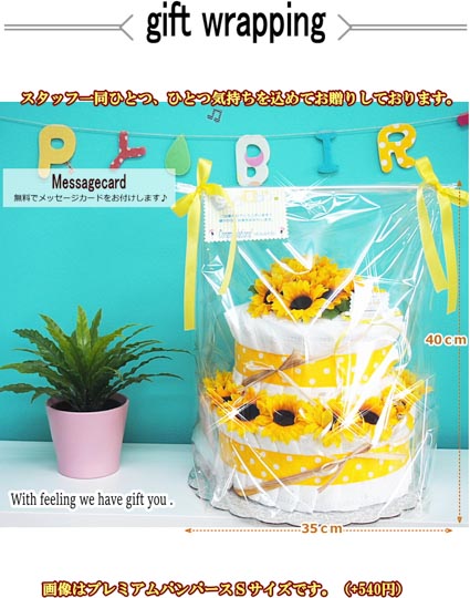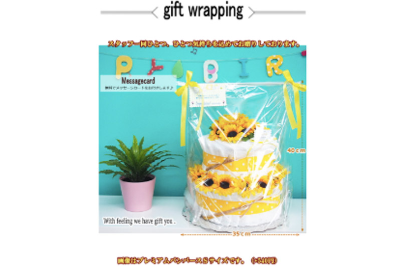 ひまわりのように真っ直ぐ元気に育ちますように、という意味も込めて贈ることが出来ます。 お祝いにもなって、オムツで出来ているので赤ちゃんがいる親御さんにとって有難いギフトです。 出産祝いに華やかなひまわりのおむつケーキの贈り物はいかがでしょうか?