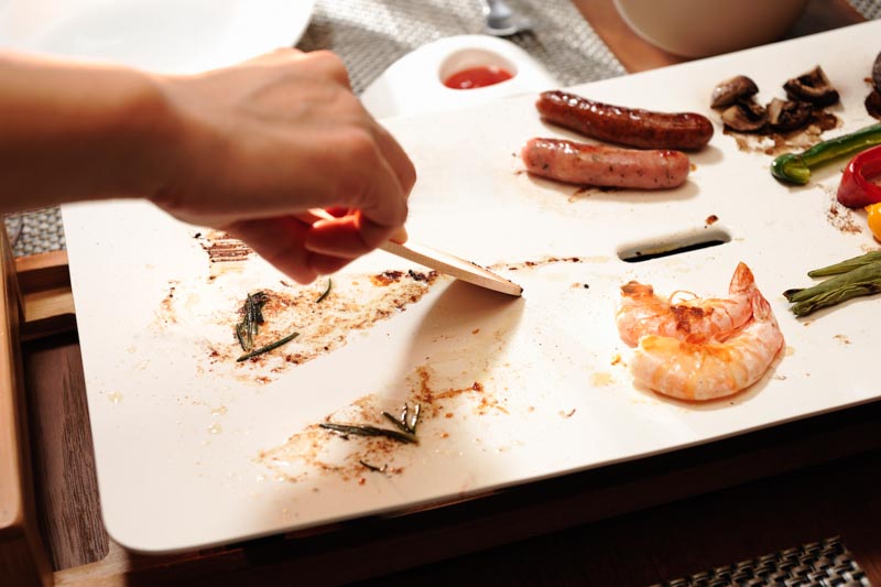 デザインや機能性だけではなく、使用後のお手入れが何と言っても楽です。 プレートを冷やして、お湯や水で湿らせたキッチンペーパーや布でサッと一拭きするだけで、汚れを簡単に落とせます。油受け取り皿は簡単に取り外し可能で、プラスチック製なので軽くて丈夫、洗浄しやすいです。