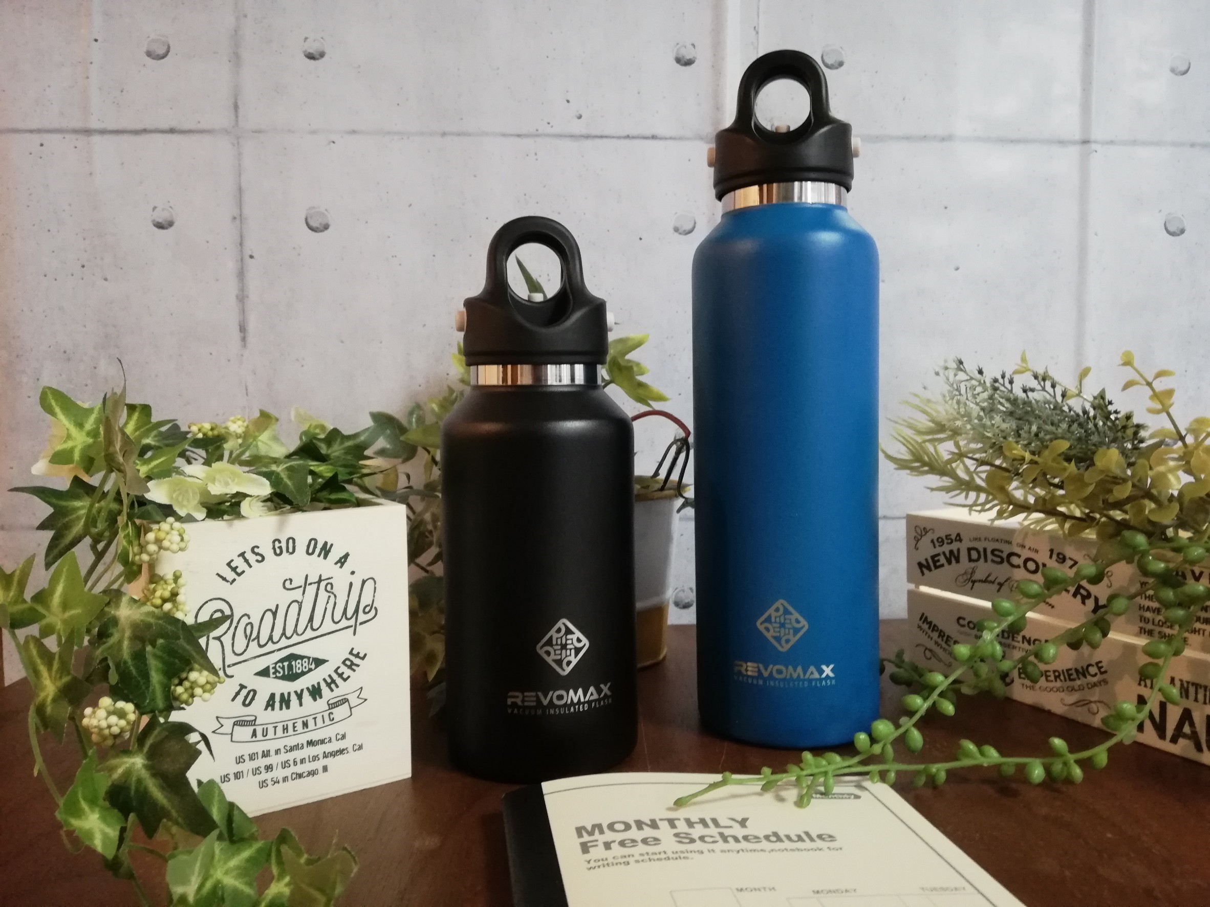 真空断熱ボトルで人気の高い【RevoMax】のREVOMAX2 355mlです。 優れた保温・保冷効力を持ち、フックを引っ張るだけでキャップを閉じることができます。 独自のキャップで炭酸をいれてもガス抜きができるため、開封時に吹きこぼれません。 カラーも6色から選ぶことができ、お好きな色をお選びいただけます。ギフトにもピッタリです。