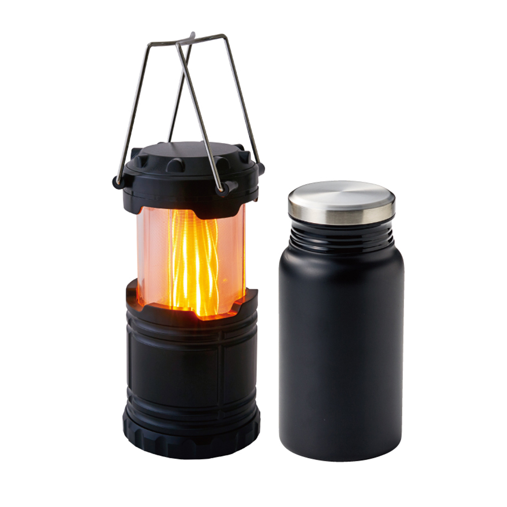 大口注文・法人のお問い合わせはこちらアウトドアライフのベストパートナー。飲み口が広く氷が入れやすい真空二重構造のサーモボトルと、アウトドアや防災グッズとして便利なLEDモバイルランタンのセットです。屋外で大活躍します。