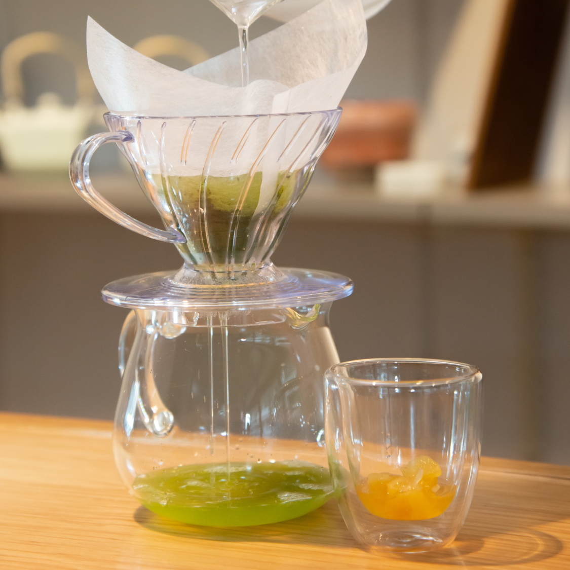 ホテルやカフェでの取り扱いをはじめ、本格的なお茶割として三和種類主催のいいちこアンバサダー、オンライン飲み会での緑茶割りにご採用いただき、ご好評をいただきました。お酒以外にもコーヒーをドリップする事が好きな方や、カフェインを気にしている方などにもおすすめです。(緑茶はコーヒーの1/3のカフェイン量です!) 朝起きた時やリラックスタイムなどお好きな時間にお楽しみください。