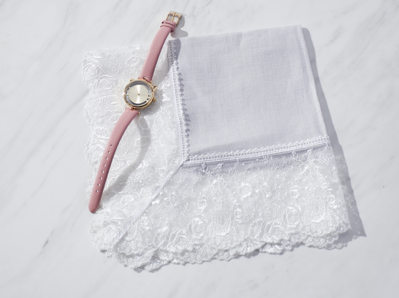 | 素材・材質 | <腕時計> ベルト:本牛革 文字盤・針:真鍮製 ケース:真鍮 裏蓋:ステンレス <ハンカチ> 麻100%(レース:ポリエステル100%) |
