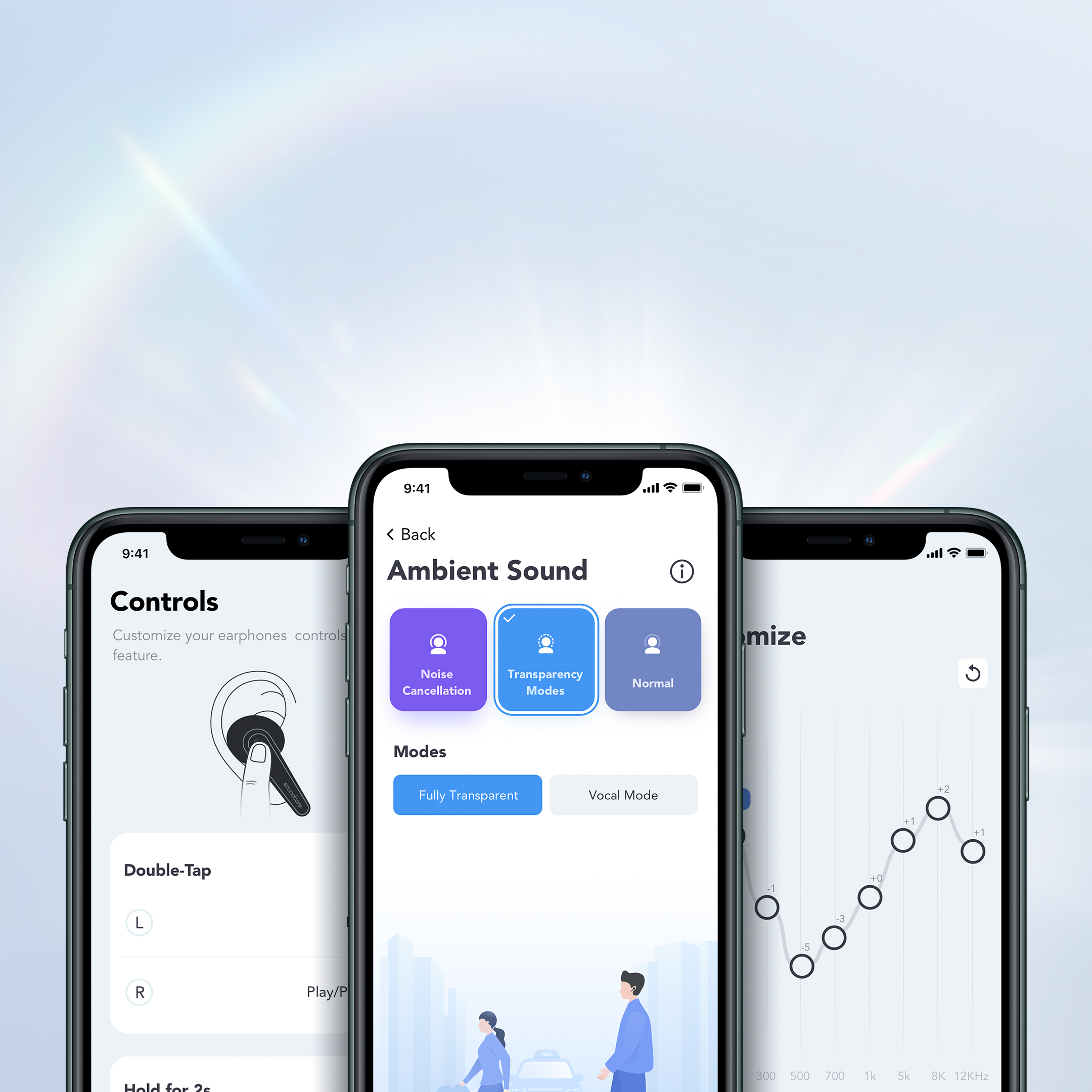 Soundcoreアプリを使ってイコライザーをカスタマイズ可能です。 高音から低音まで自由自在に出力を調整できます。 また、進化したイコライザー機能「HearID 2.0」を搭載し、従来のHearing Profileの自動作成に加えて、ロックやポップ等の音楽ジャンルを掛け合わせて設定することが可能になり、より自分の好みにあったサウンドをお楽しみいただけます。
