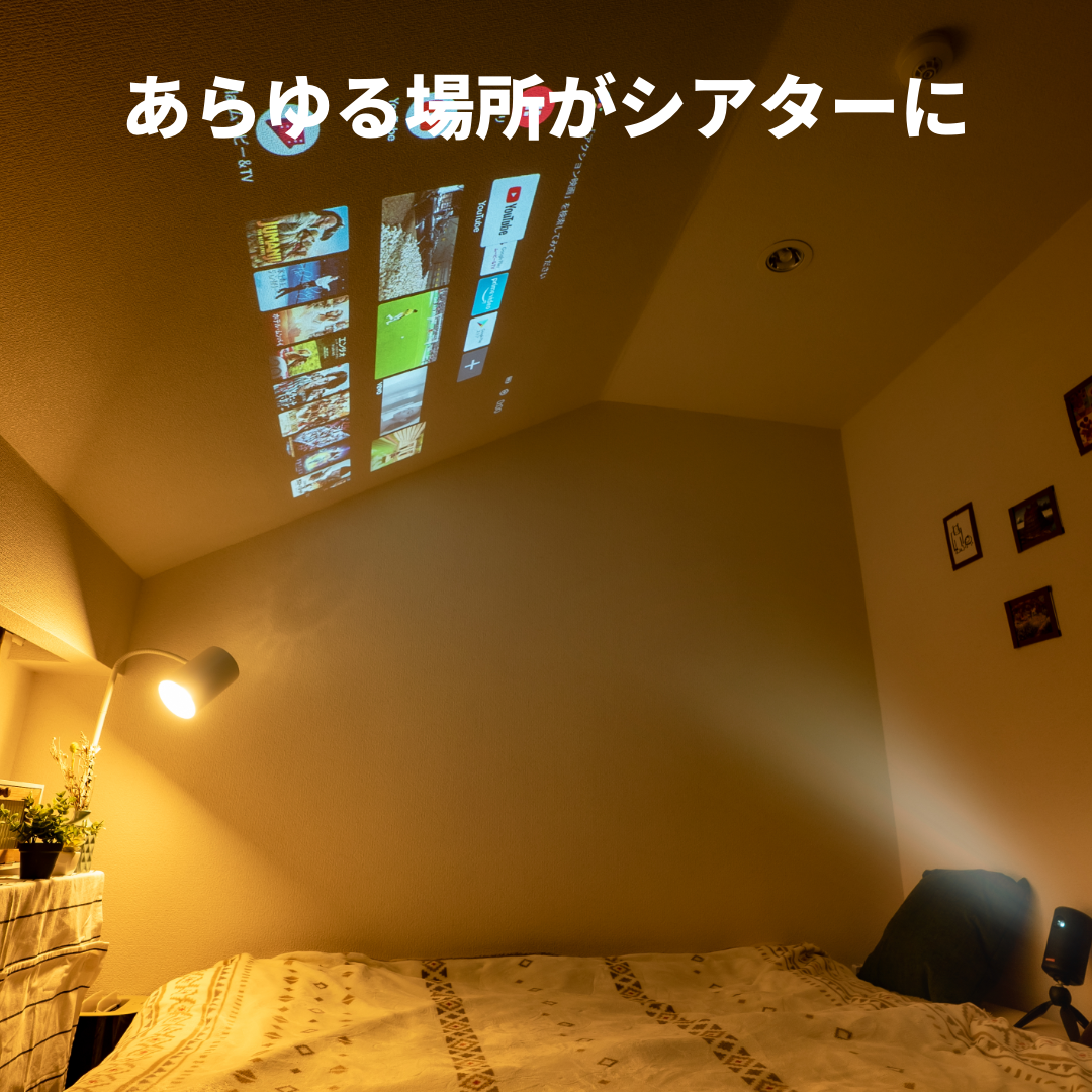 大口注文・法人のお問い合わせはこちら音楽や映画が好きな方におすすめなアイテムです。 ご家族と一緒に、お一人様でも。おうち映画館を簡単に実現することができます。 コンパクトサイズでありながらバッテリーを内蔵しているので、リビングや寝室、子供部屋など複数のお部屋で使用されたい方、またキャンプやアウトドアで使用されたい方にぴったりです。 Bluetoothスピーカーとしてもご使用いただけます。