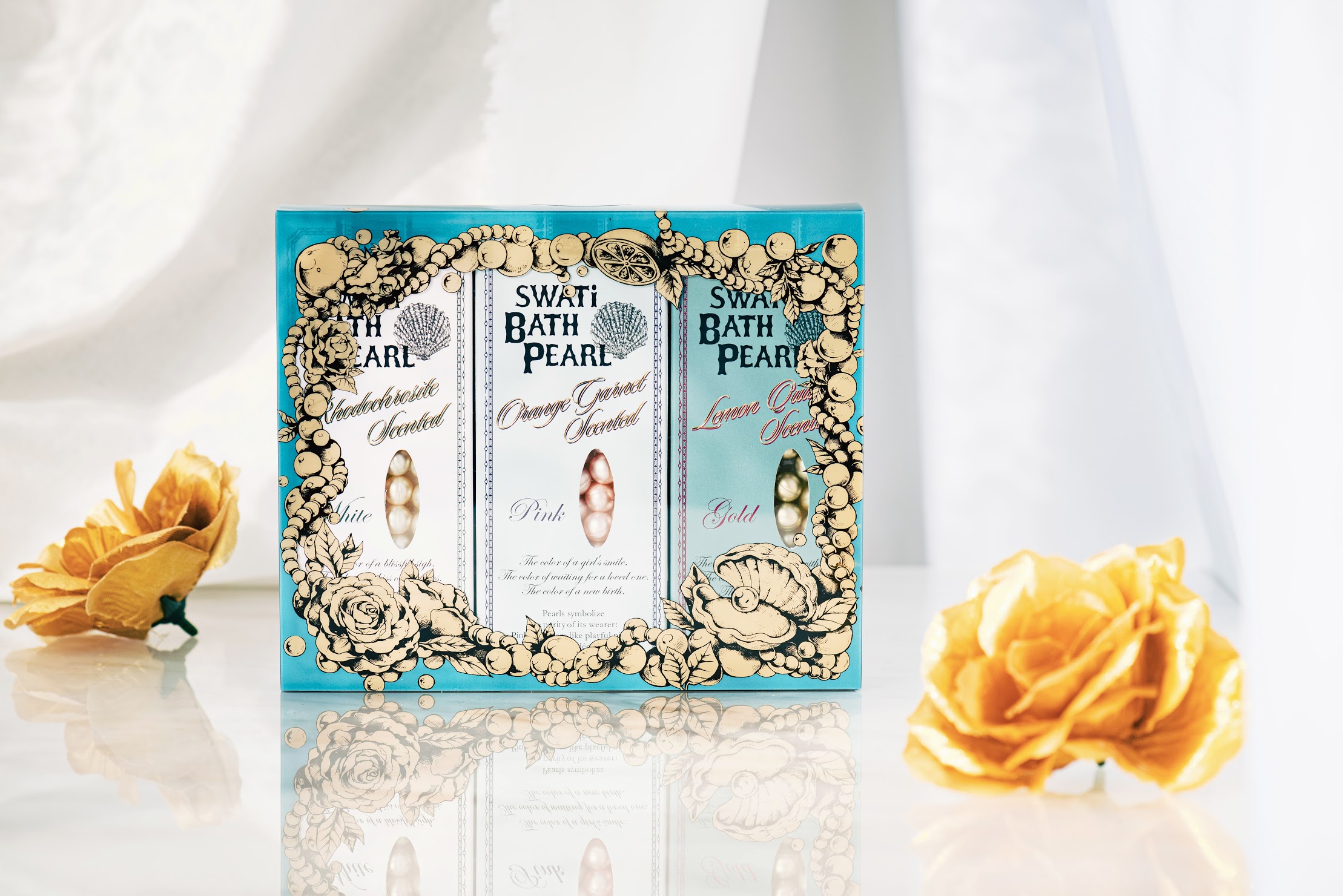スワティー人気No.1のパールが湯舟に浮いていたらおしゃれでかわいいな!という発想から生まれたオリジナル入浴料「スワティーバスパール」が、オリジナルパッケージに入った3種の香りを楽しめるセットになりました。 お湯に浮かべると湯船の中で徐々に溶け出し、ラグジュアリーな香りがバスルームいっぱいに広がります。 お湯が乳白色に変化し、しっとりなめらかなお肌へ。その日の気分によって香りを変えてお楽しみください。
