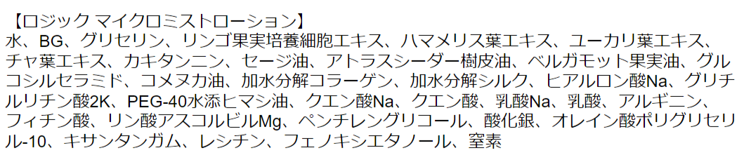 | お届け内容・セット状態 | ・LOGIC フォーミングウォッシュ〈泡洗顔〉 ・LOGIC マイクロミストローション〈ミスト化粧水〉 |