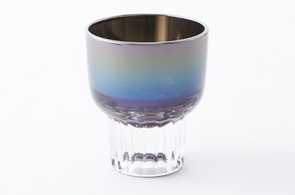 テーブルウェアでは世界ではじめてのジェンダーレスブランド「PROGRESS(プログレス)」の盃Chicです。光に当たると輝く透明な高台がアクセントになっています。日本酒を注ぐと美しい揺らぎが楽しめる鏡の器は小鉢としても重宝します。正月やお祝いの席などにも花を添えるデザインです。